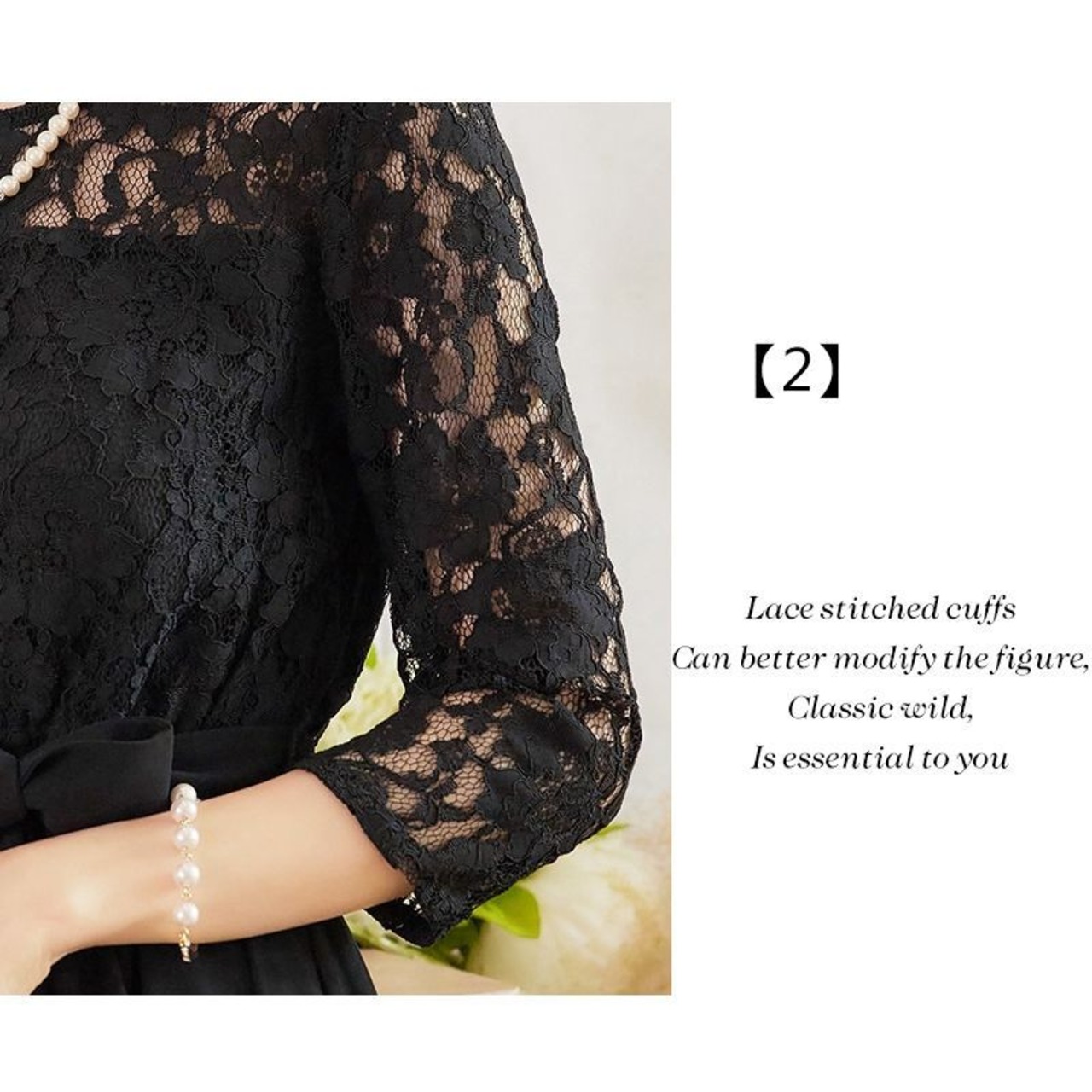 透け感のあるレース袖が華やかさをプラス。