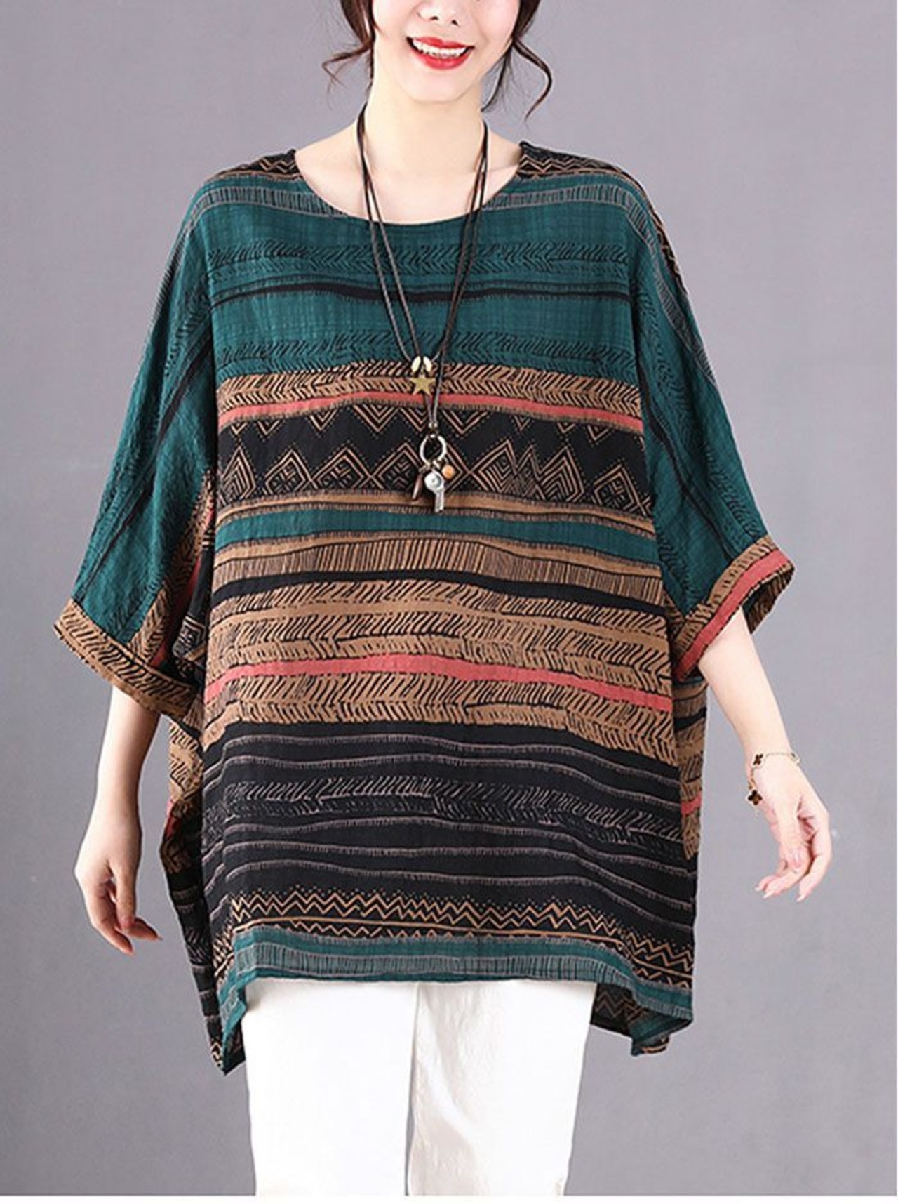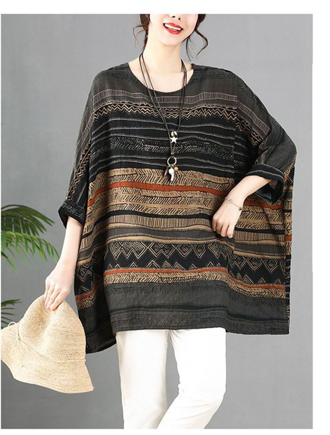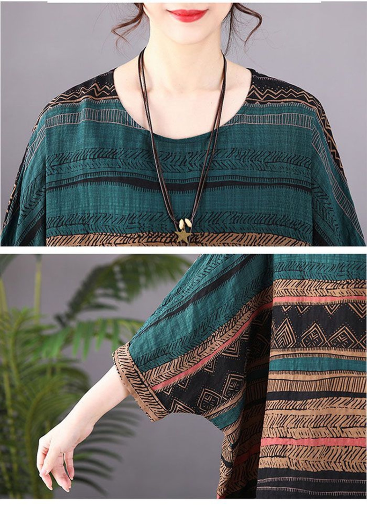 チュニック 大きいサイズ チュニック ブラウス 五分袖 Tシャツ レディース 五分袖 大きいサイズ プルオーバー ゆったり トップス 総柄 カットソー チュニックワンピース フレア キレイめ カジュアル エスニック風 ビッグシルエット 春 夏 秋 大人可愛い チュニックnvrhua05