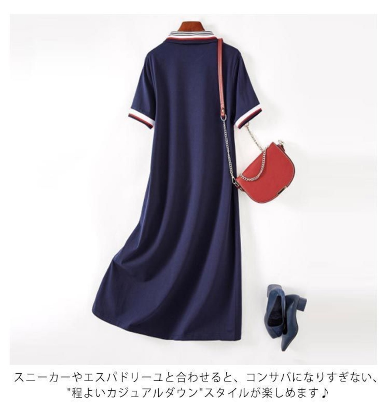 新品 ポロワンピース 未使用 レディース ポロシャツ 無地 ワンピース ゴルフウェア Vネック ポロ襟 ポロシャツワンピース ロングTシャツ 夏 涼しい Aラインスカート Aラインワンピース シンプル カジュアル yunban38