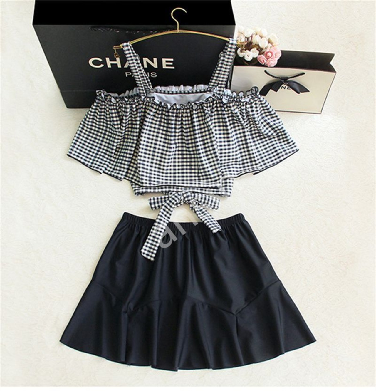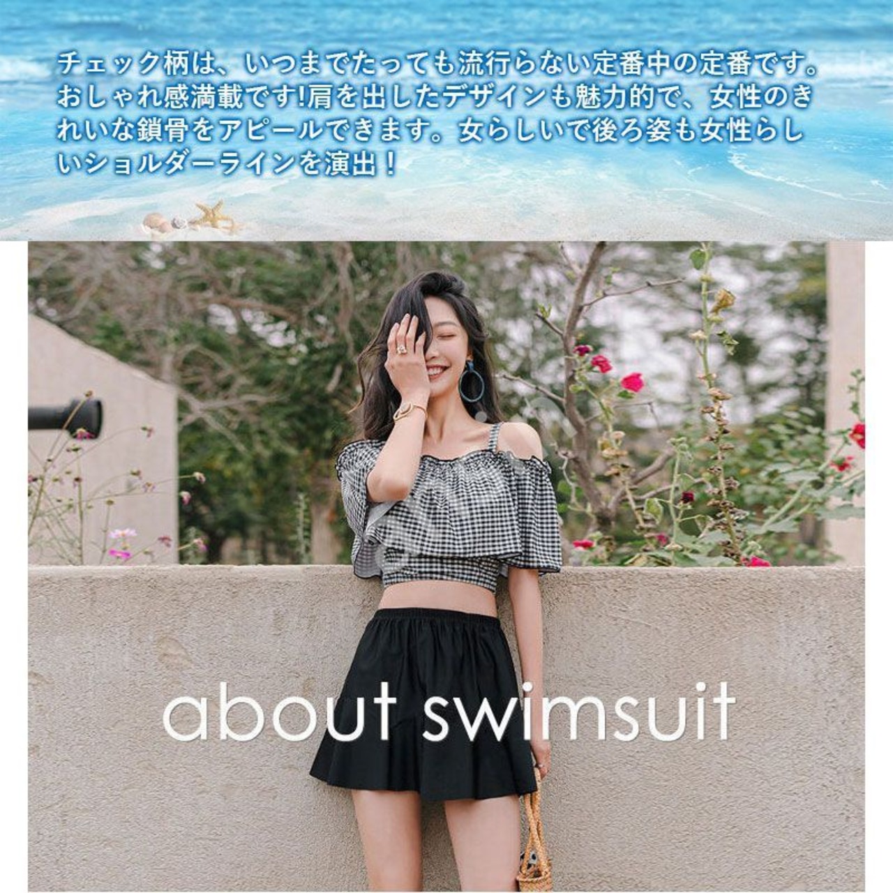水着 即購入OK レディース オフショルダー ビキニ 格子 チェック柄 セパレート ビスチェ風 ビキニセット フィットネス 肩出し スカート ハイウエスト パッド付 小胸 バスト 盛れる おしゃれ かわいい 高校生 母の日 zhangban25