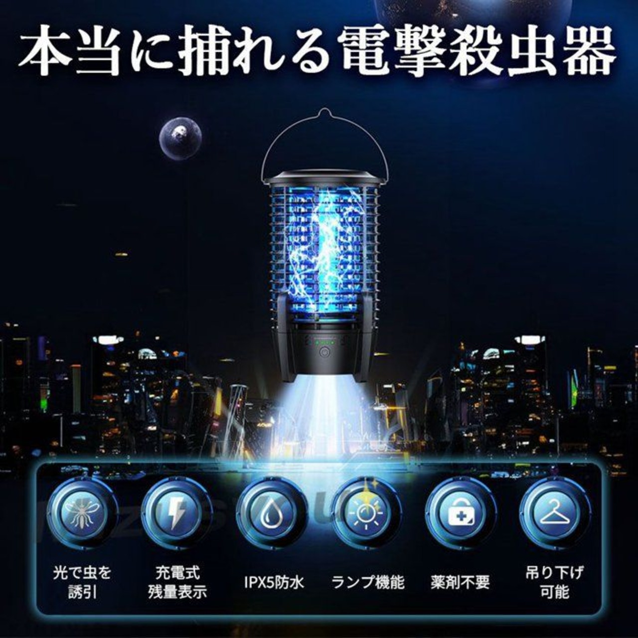 充電式 IPX5防水 電撃未使用殺虫器 ランプ機能あり 虫捕り器 蚊取り器 虫よけ 虫除け 蚊 コバエ ハエ 電気 UV光源誘banlt09