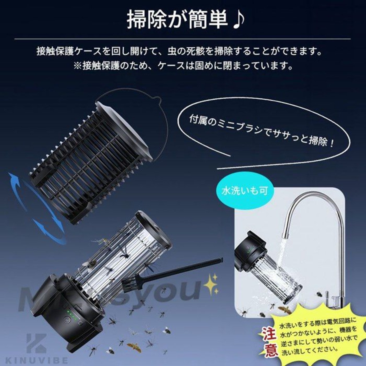 接触保護ケースをカチッと回し開けて、虫の死骸を取り除くことができます。<br>