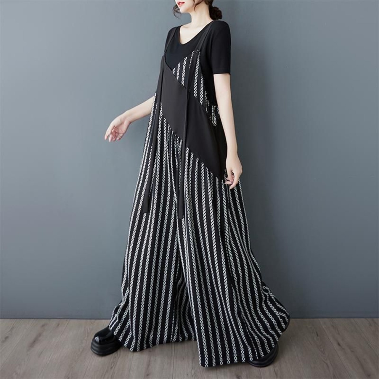 モード系 大きいサイズ サロペット パンツ 個性派 レディース 春夏 新品 ストライプ