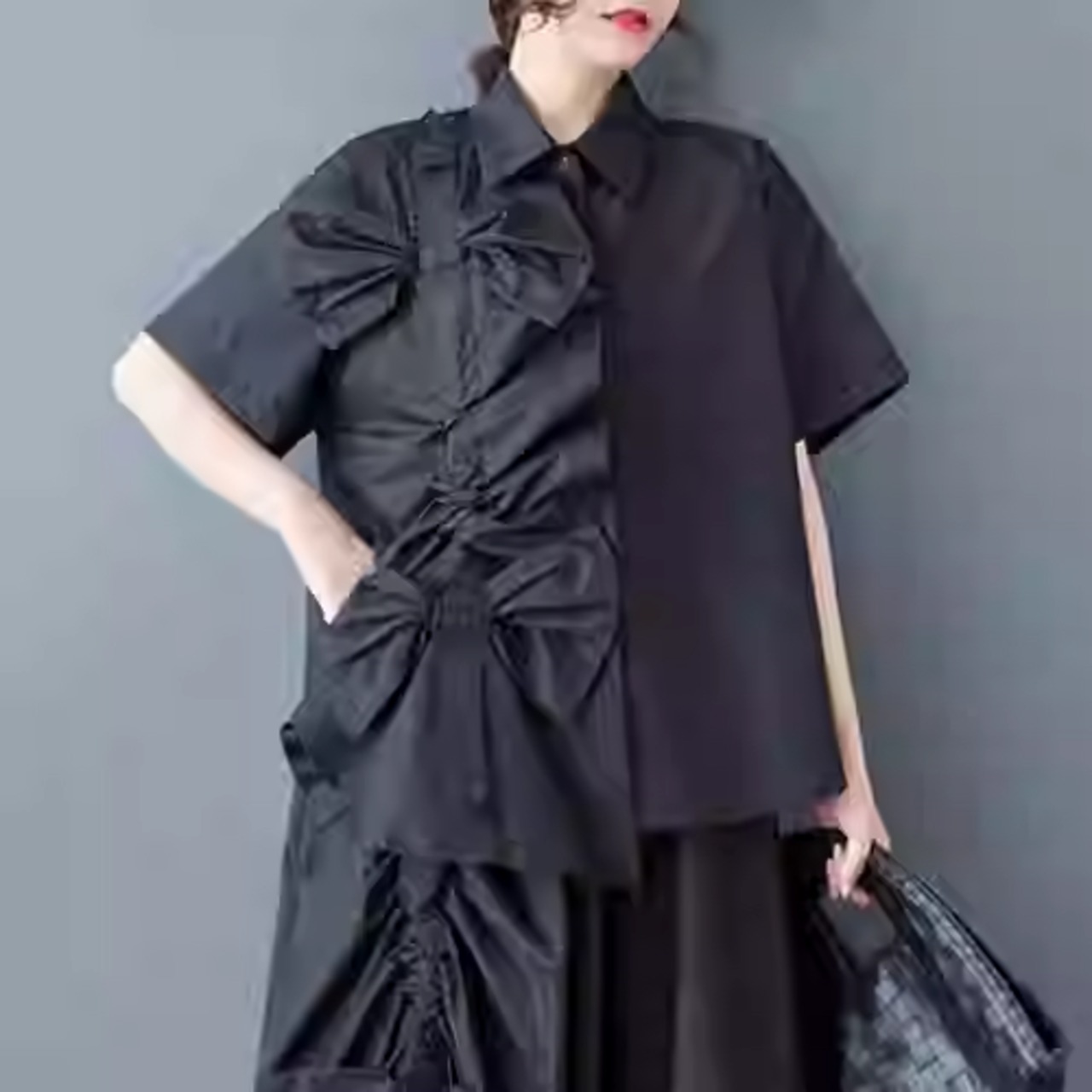 斜めドレープ 配色 体型カバー 変形デザイン 新上品