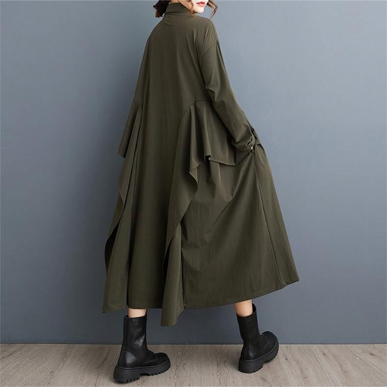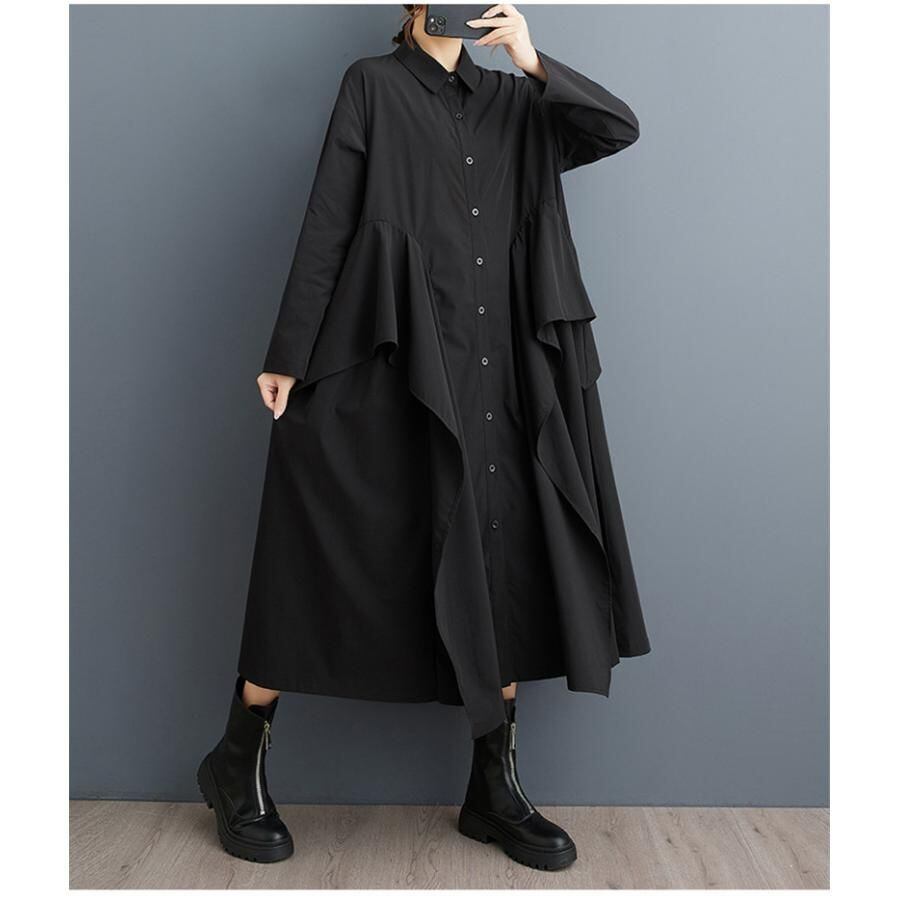 モード系 シャツワンピース 不規則 レディース ロング丈 着回し力の高いシンプルなデザイン カジュアル 今シーズン大人気 ちょっとしたお出かけにもぴったり