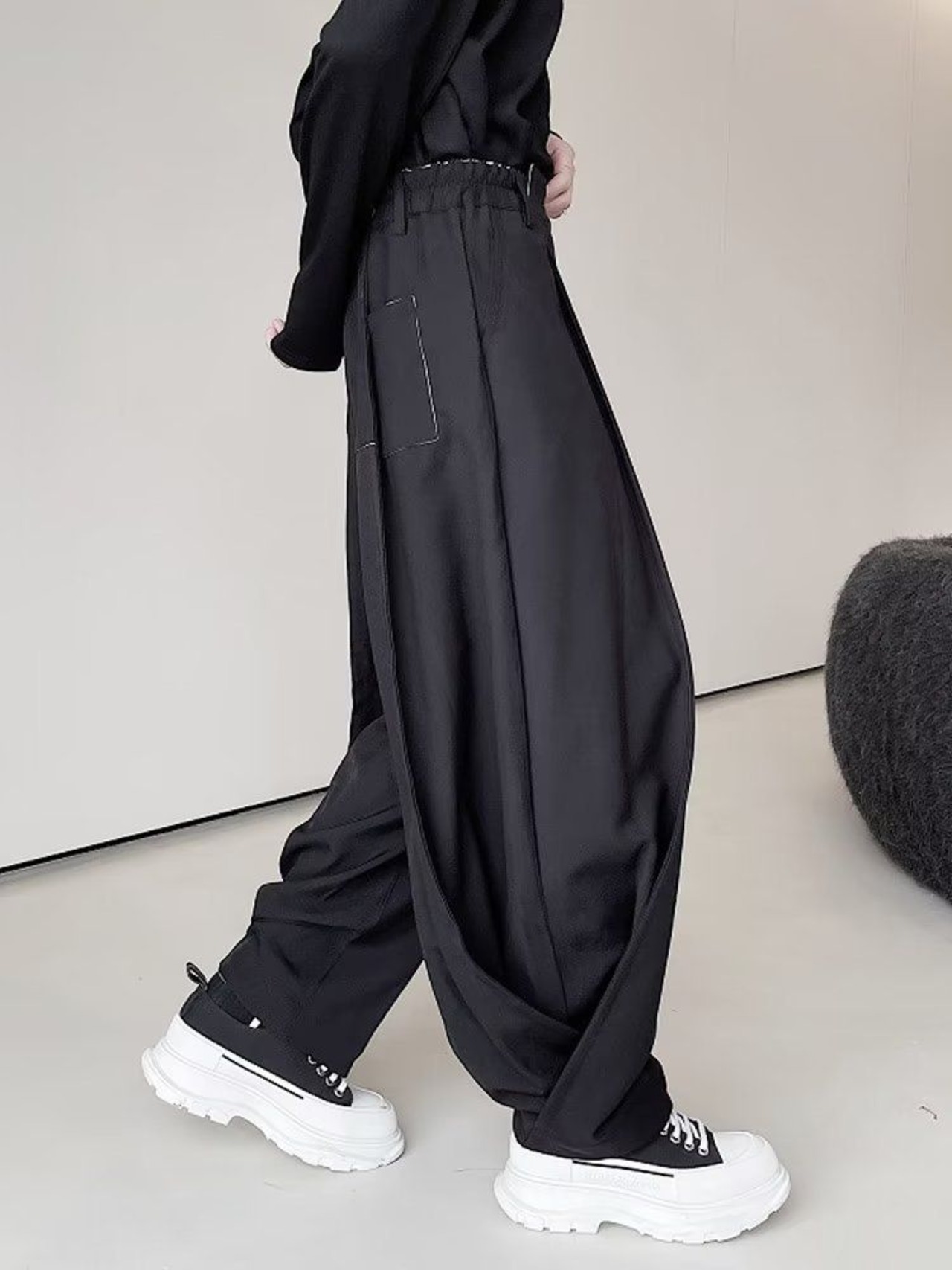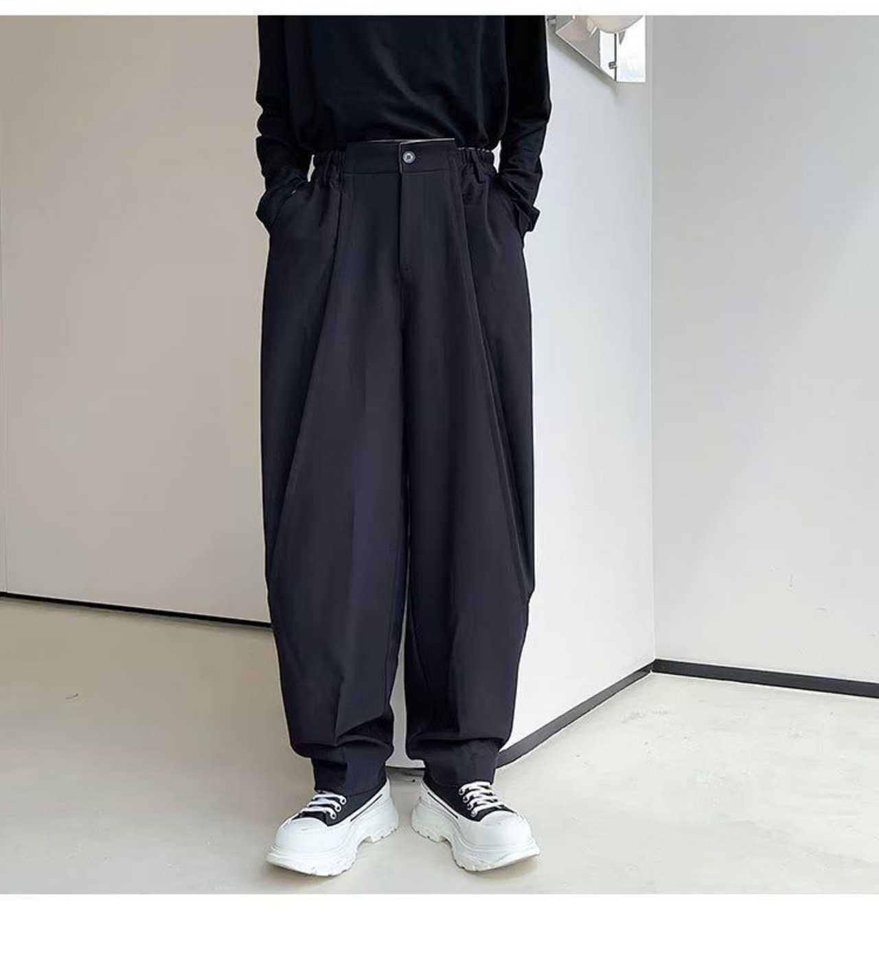 モード系 和風 ダークスタイル ストレート ワイドレッグパンツ メンズ ドレープパンツ ルーズ ヘアスタイリスト カジュアルパンツ トレンド