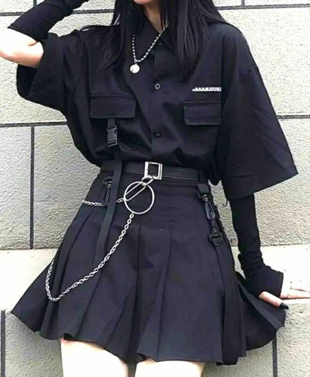 地雷系ゴシック4点セット シャツ チェーン ベルト ゴスロリパンク