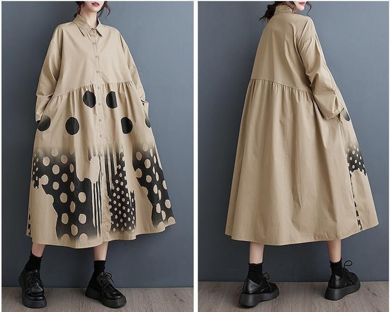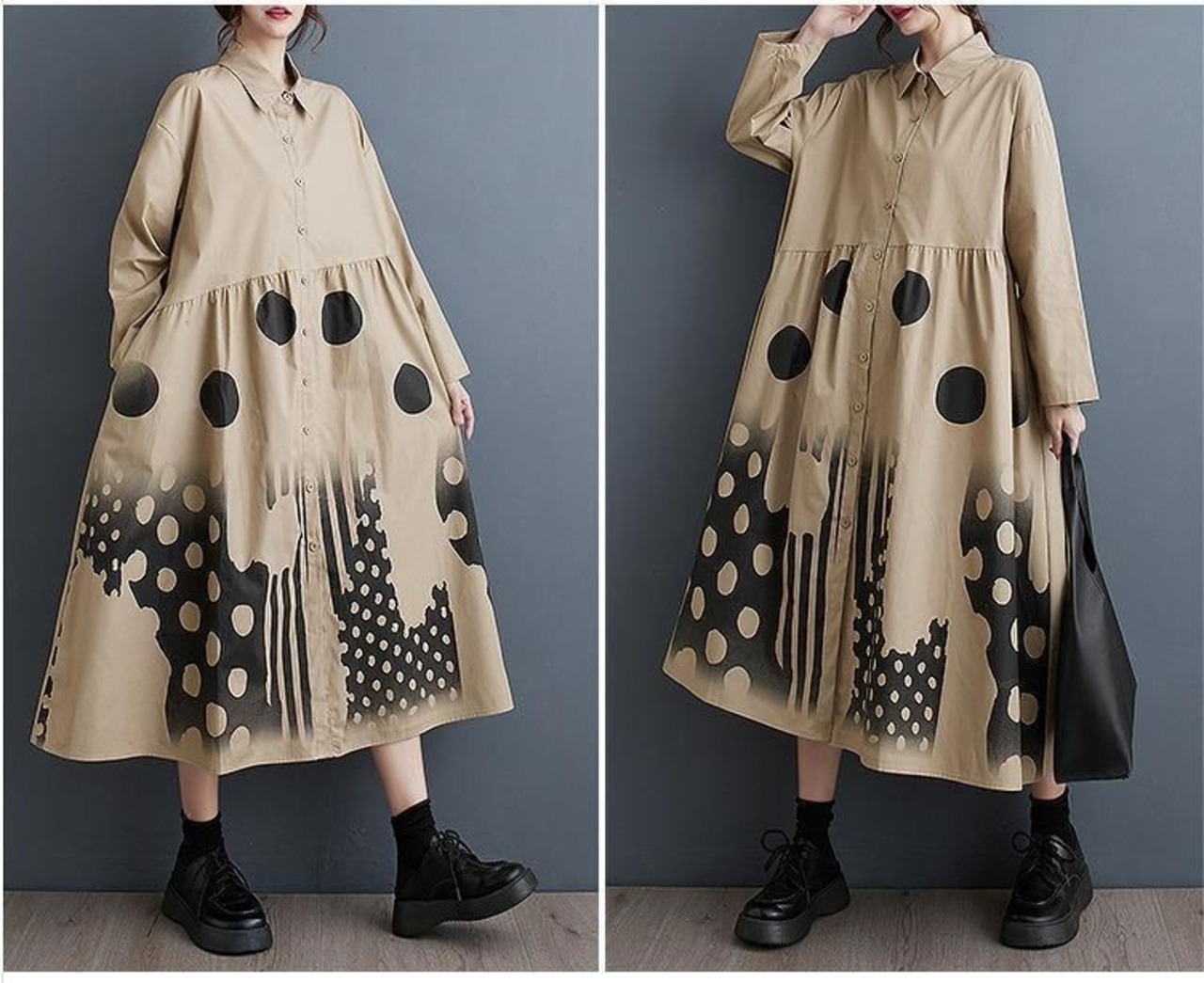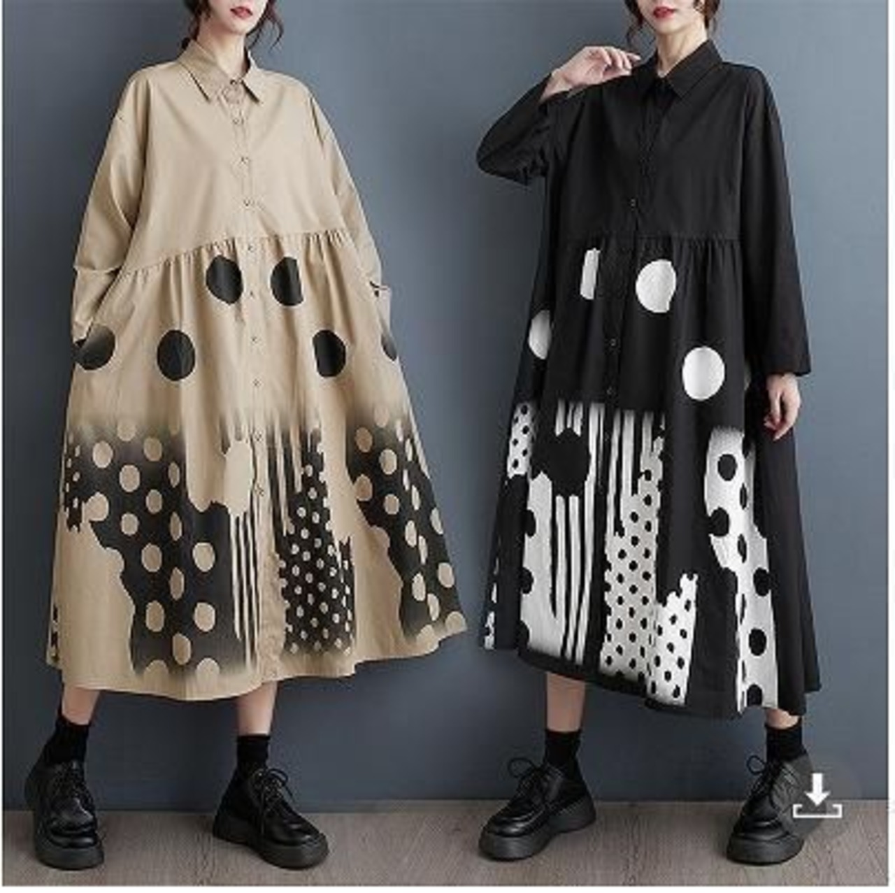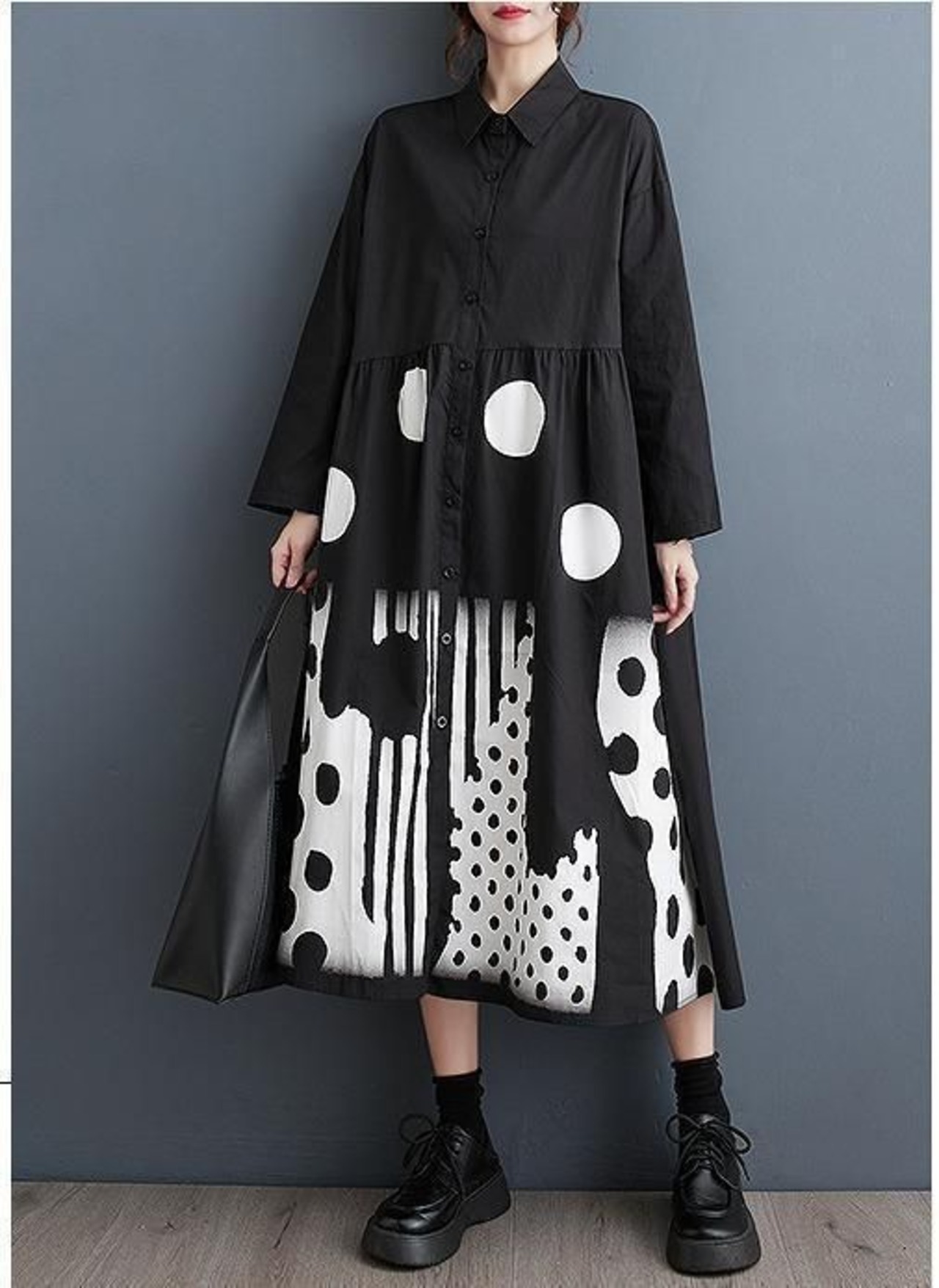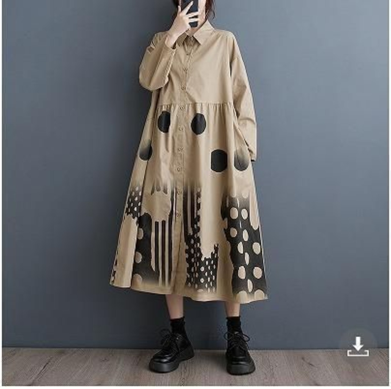 モード系 大きいサイズ レディース ワンピース ロング ドット 春 秋冬 新品 長袖