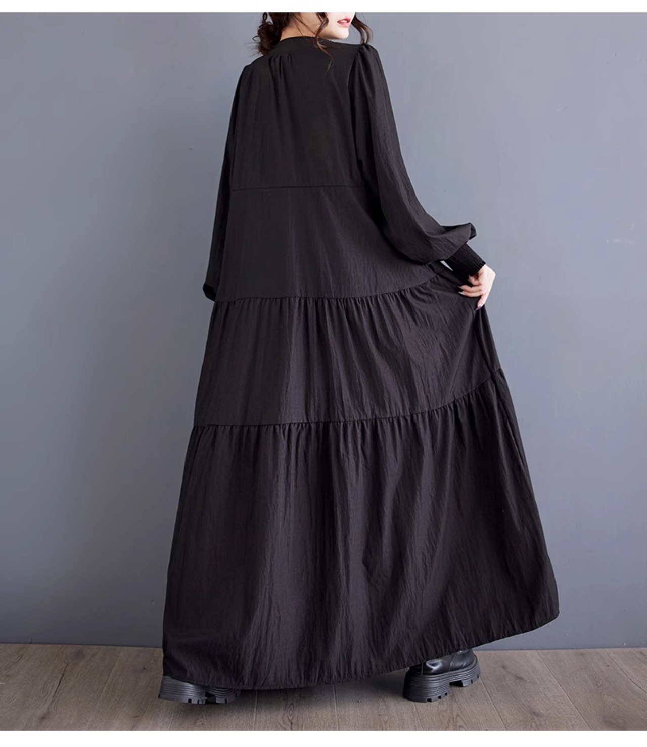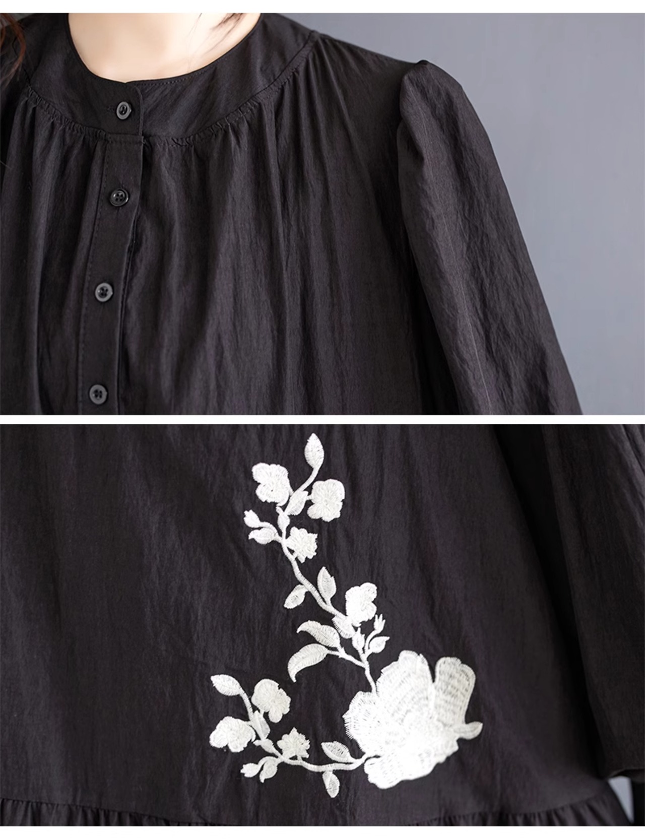 モード系 秋スタイル 大きいサイズ ファッショナブル スタンドカラー 刺繍花 多層 ステッチミッドレングス エレガントドレス