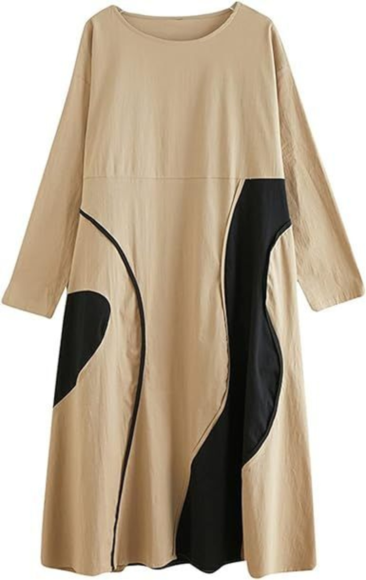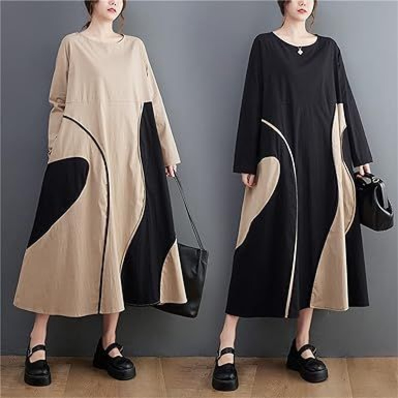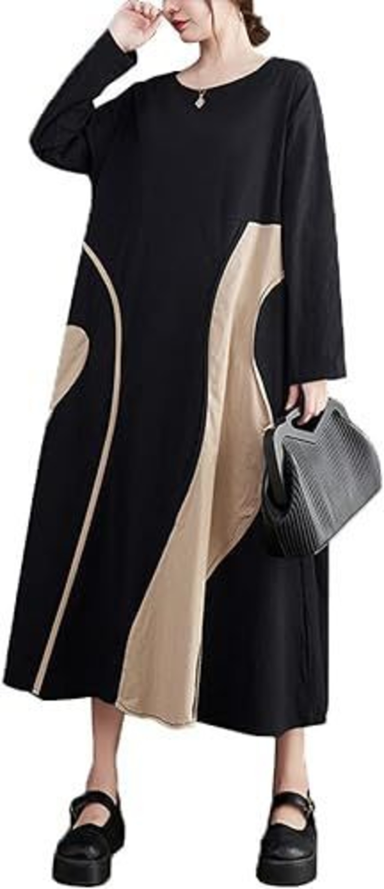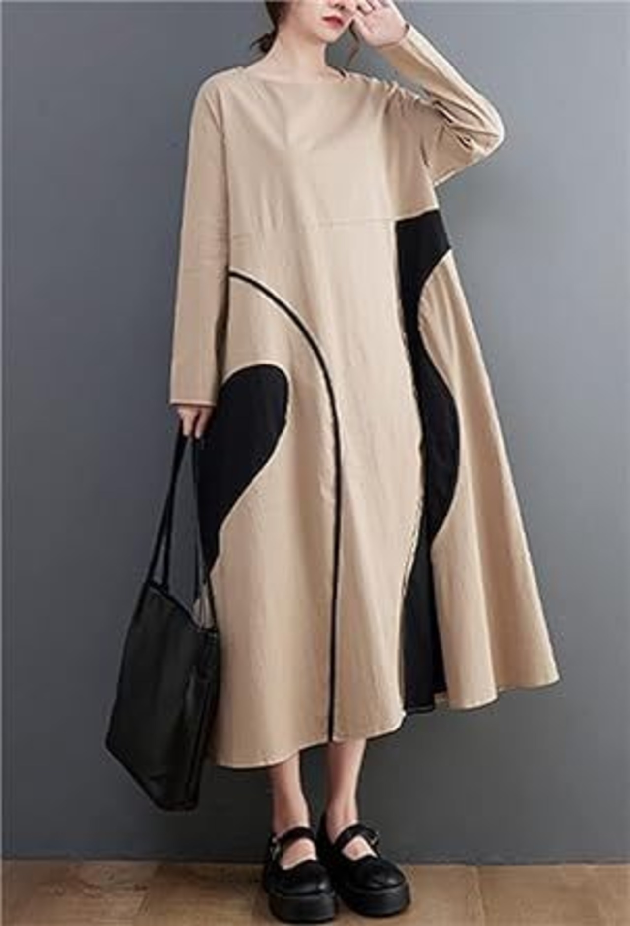 モード系 ロングワンピース レディース ワンピース 長袖 ゆったり ロング丈 体型カバー クルーネック 大きいサイズ おしゃれ カジュアル 無地 春秋冬