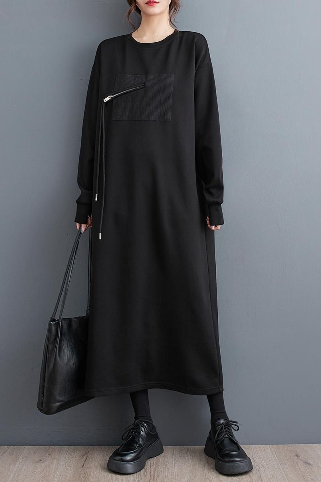 モード系 個性的な ジッパー ウエスタン風 ロングワンピース ニッチなデザイン 通勤 ステージ衣装