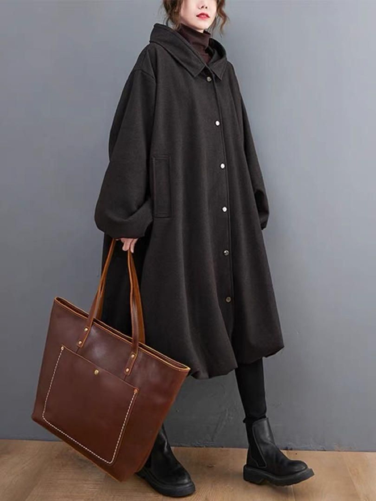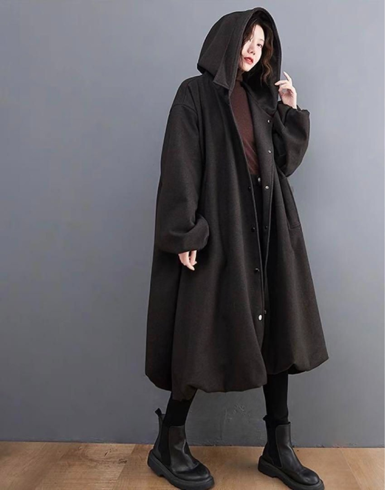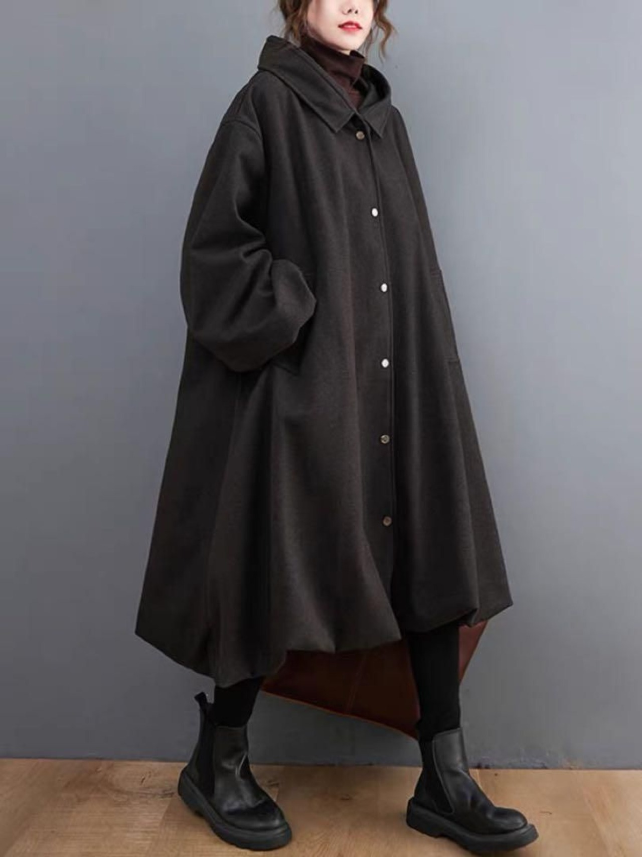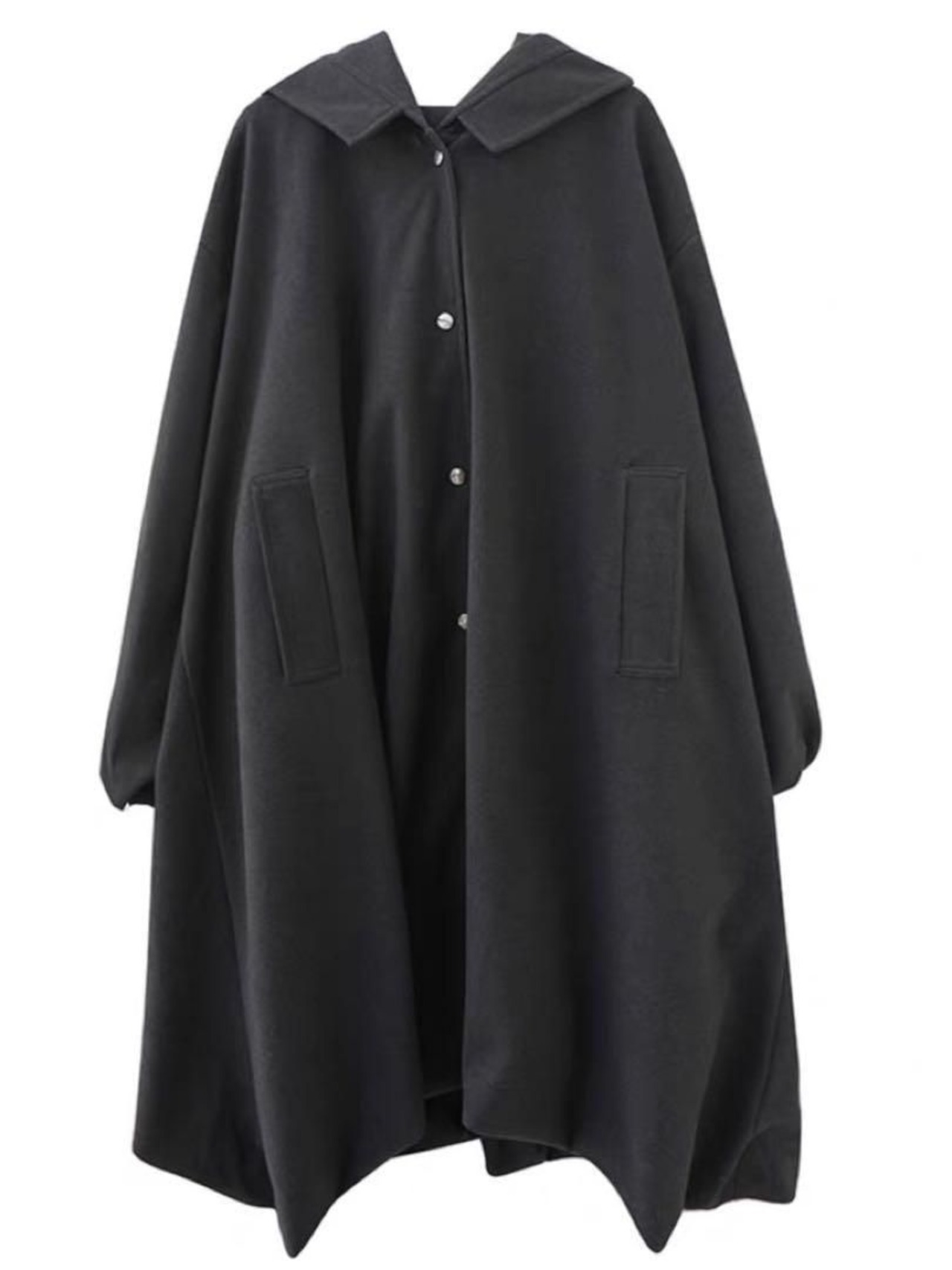 モード系 黒コート アウター 個性 ゆったり フリーサイズ ウール ロングコート フード付き ゆったり