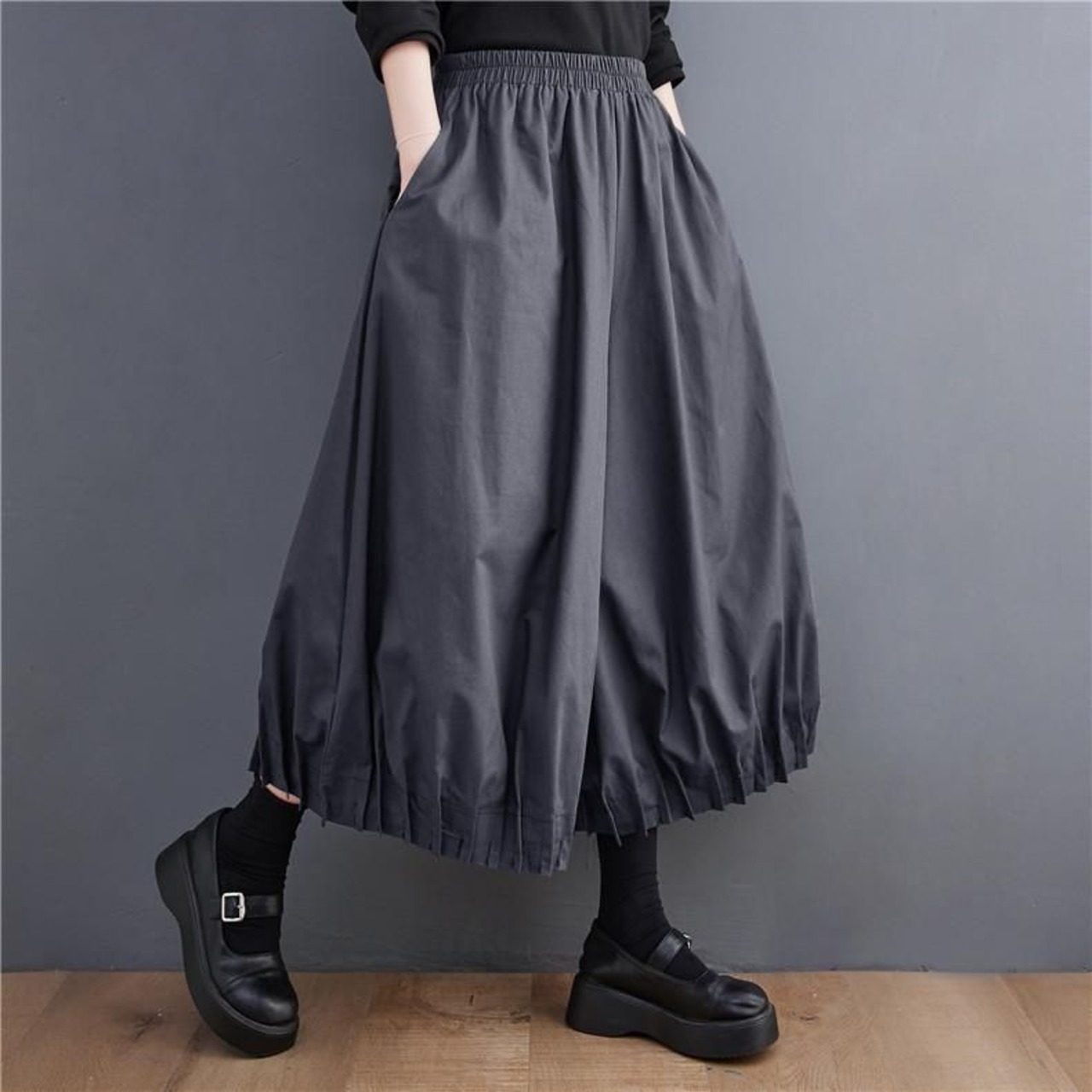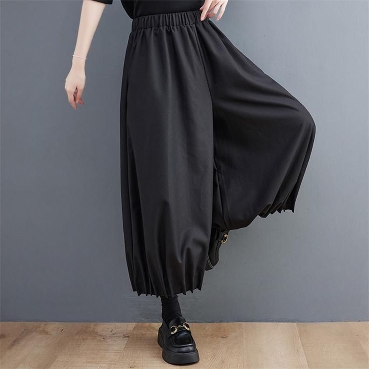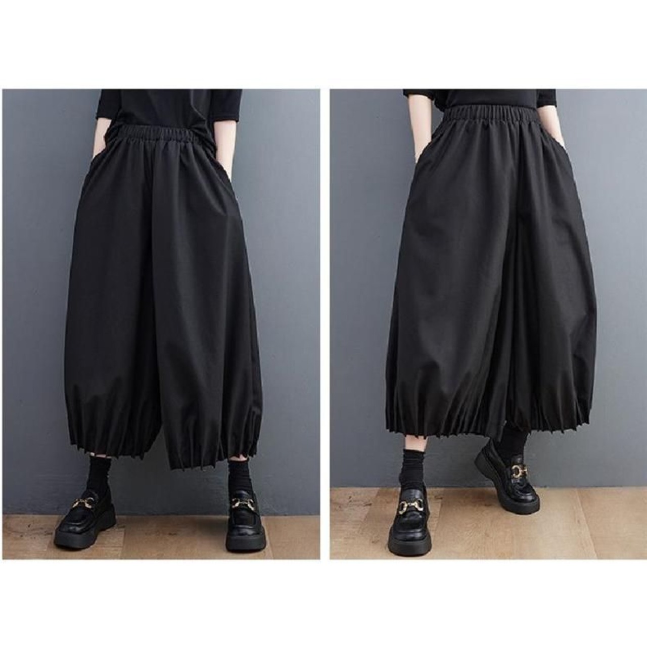 モード系 ガウチョパンツ レディース オーバーシルエット パンツ コットン ズボン ウェストゴム ポケット付き 無地 自然に体型カバー
