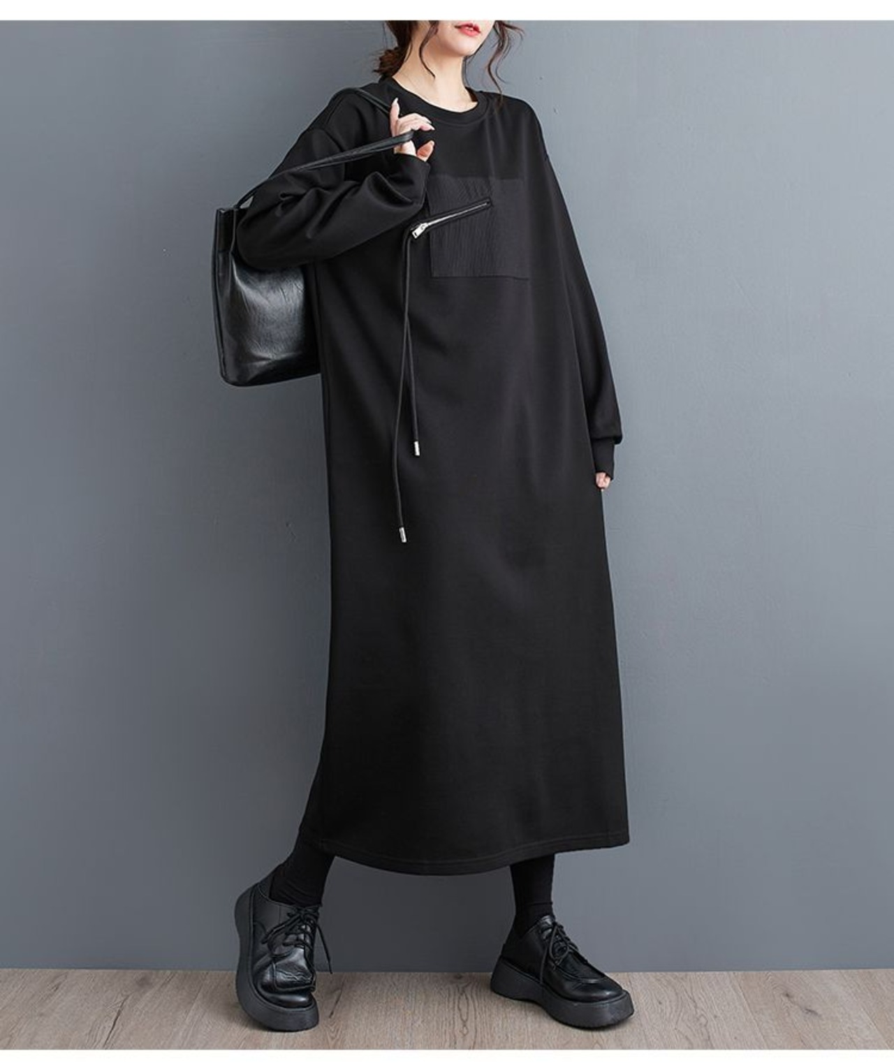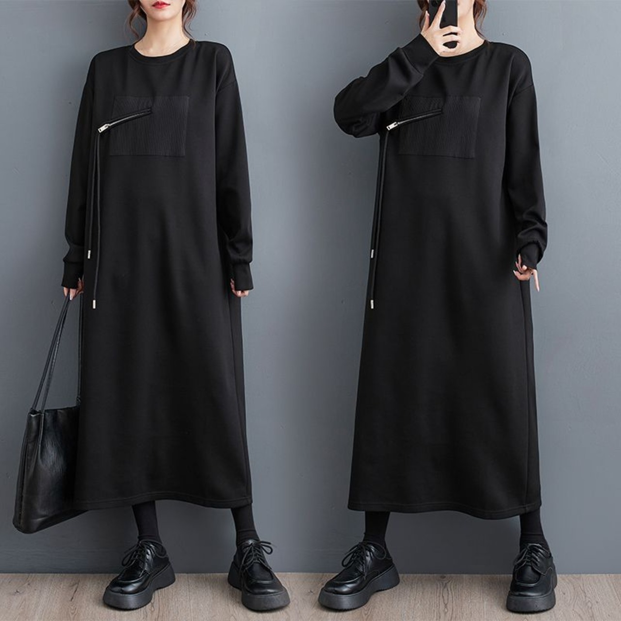モード系 個性的な ジッパー ウエスタン風 ロングワンピース ニッチなデザイン 通勤 ステージ衣装