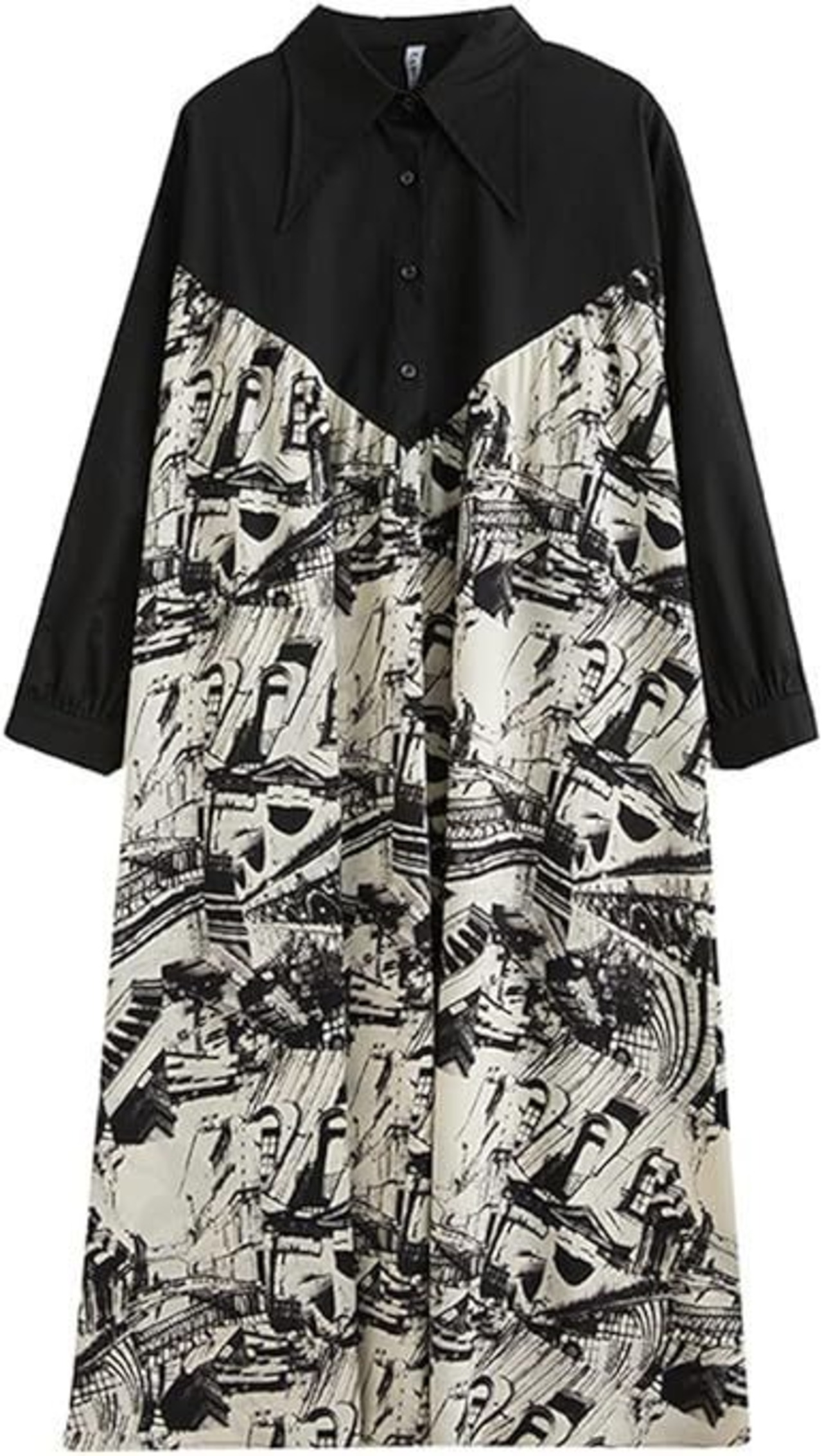 ロングシャツワンピース レディース 長袖 ゆったり 切り替え プリント カジュアル Hライン