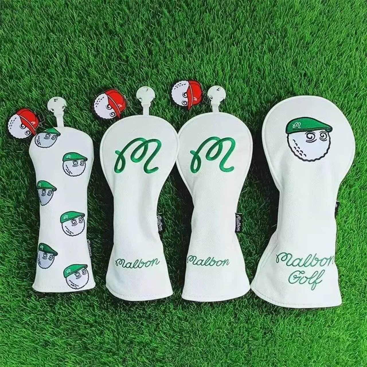 新品 malbon golf マルボンゴルフ クラブ ヘッドカバー 1+3+5+UT 4点セット ゴルフヘッドカバー ホワイト