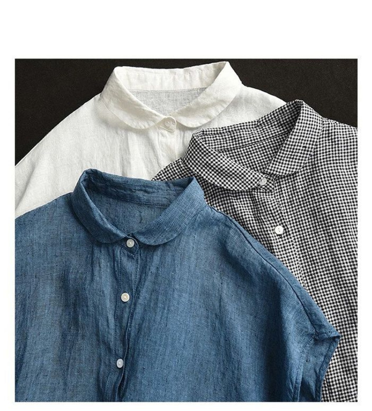 シャツ ブラウス レディース フレンチスリーブ シャツ 夏 ふんわり シャツブラウス 綿麻風 チェック トップス 半袖 大きいサイズ ゆったり 体型カバー カジュアル ナチュラル 無地 シンプル 可愛い 大人 おしゃれ きれいめ 夏服 薄手 大きいサイズ