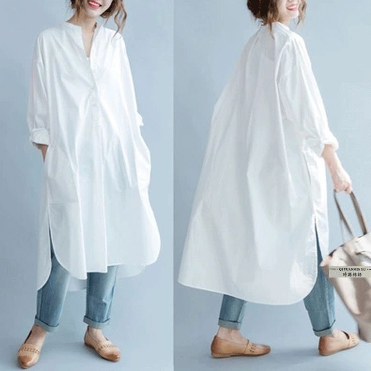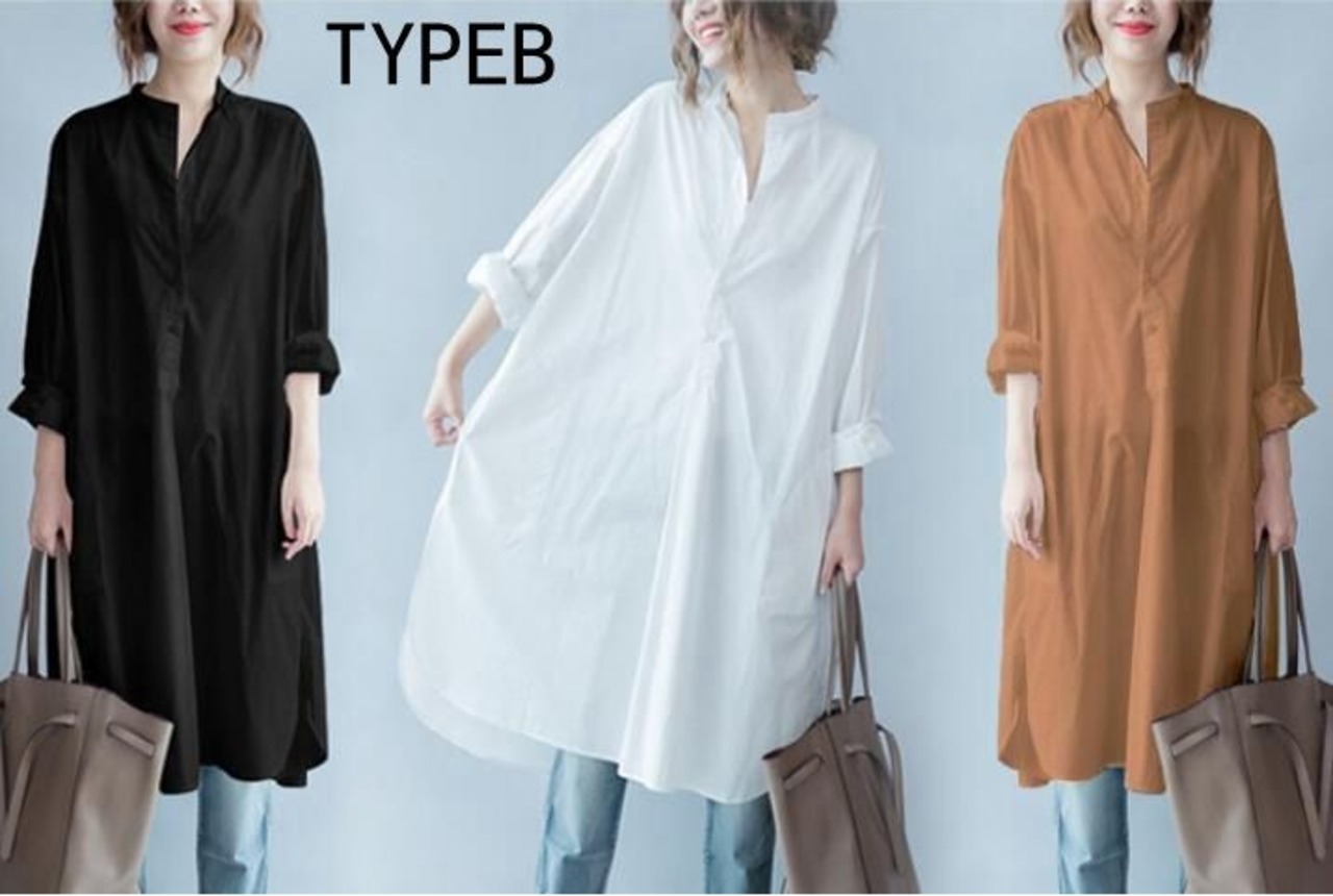【品 番】xycs01 【素 材】綿混紡 【サイズ】F TYPEA:F=XL 着丈:95cm 肩幅:43.5cm バスト;120cm 袖丈:47cm TYPEB 着丈:前:107cm 後:112cm バスト:134cm 【カラー】TYPEAホワイト,TYPEAブラック,TYPEBホワイト,TYPEBブラック,TYPEBキャメル 【ご注意】 ※色落ちする可能性がございますので、ご注意くださいませ。 ※本製品は生産過程におきまして、生地を織る際の糸の継ぎ目や多少のほつれが生じることがありまが、品質上は問題ありません。また、生地の織りに他繊維が混紡している場合もございます。 ※購入時期により若干デザインが異なる場合がございます。そのようなご理由でのご返品&交換はお受けしておりません。 ※記載の詳細サイズは、メジャーによる実寸の誤差、商品の素材(生地)による誤差が生じる場合があります。 【商品説明】 ゆるシルエットシャツチュニック。 お尻まですっぽり隠れる丈感とドルマンスリーブで、 無地でシンプルの中にトレンド感を取り入れたシャツになっております。 ホワイト、ブルー、ブラックの3色展開で清潔感のある爽やかな印象を与えてくれるシャツです。(日曜日・祝日は発送対応しておりません。)
