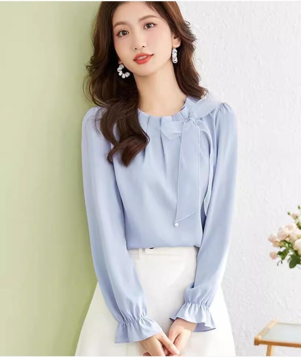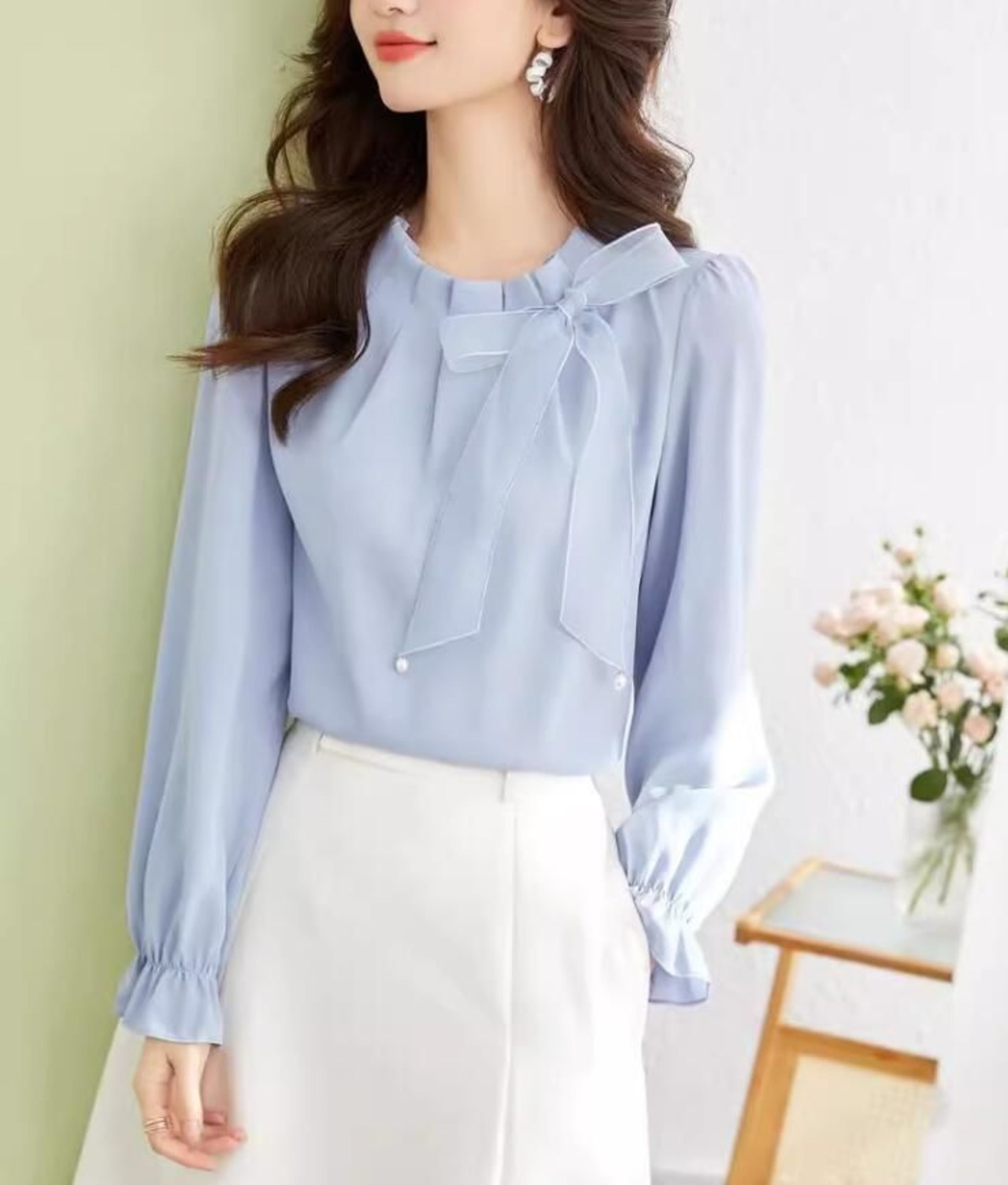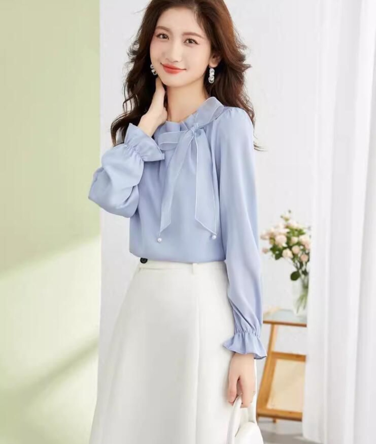 ブラウス レディース シャツ リボンブラウス 長袖 入学式 卒業式 ママ オフィス カジュアル ファッション 通勤 日常 guanmi01