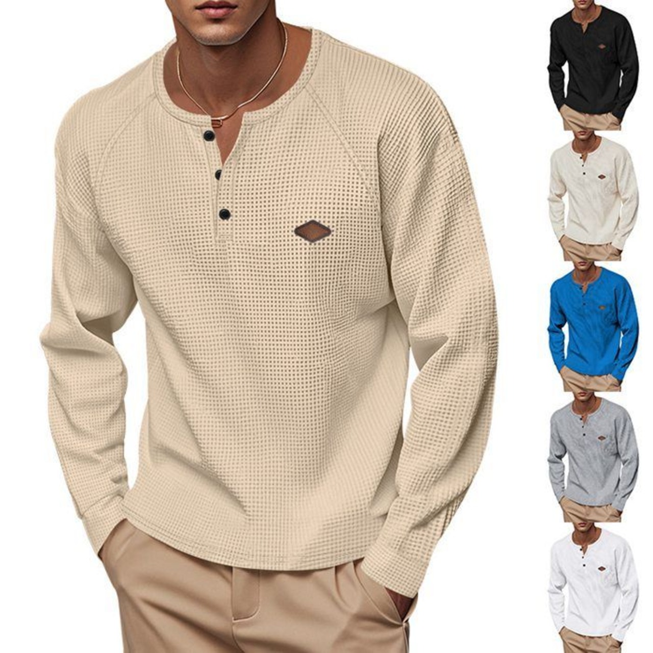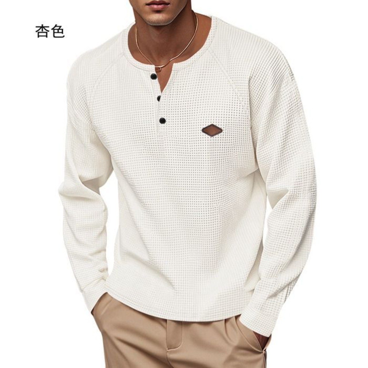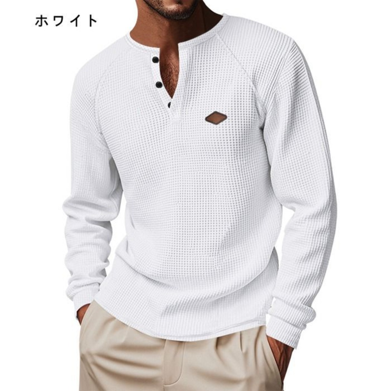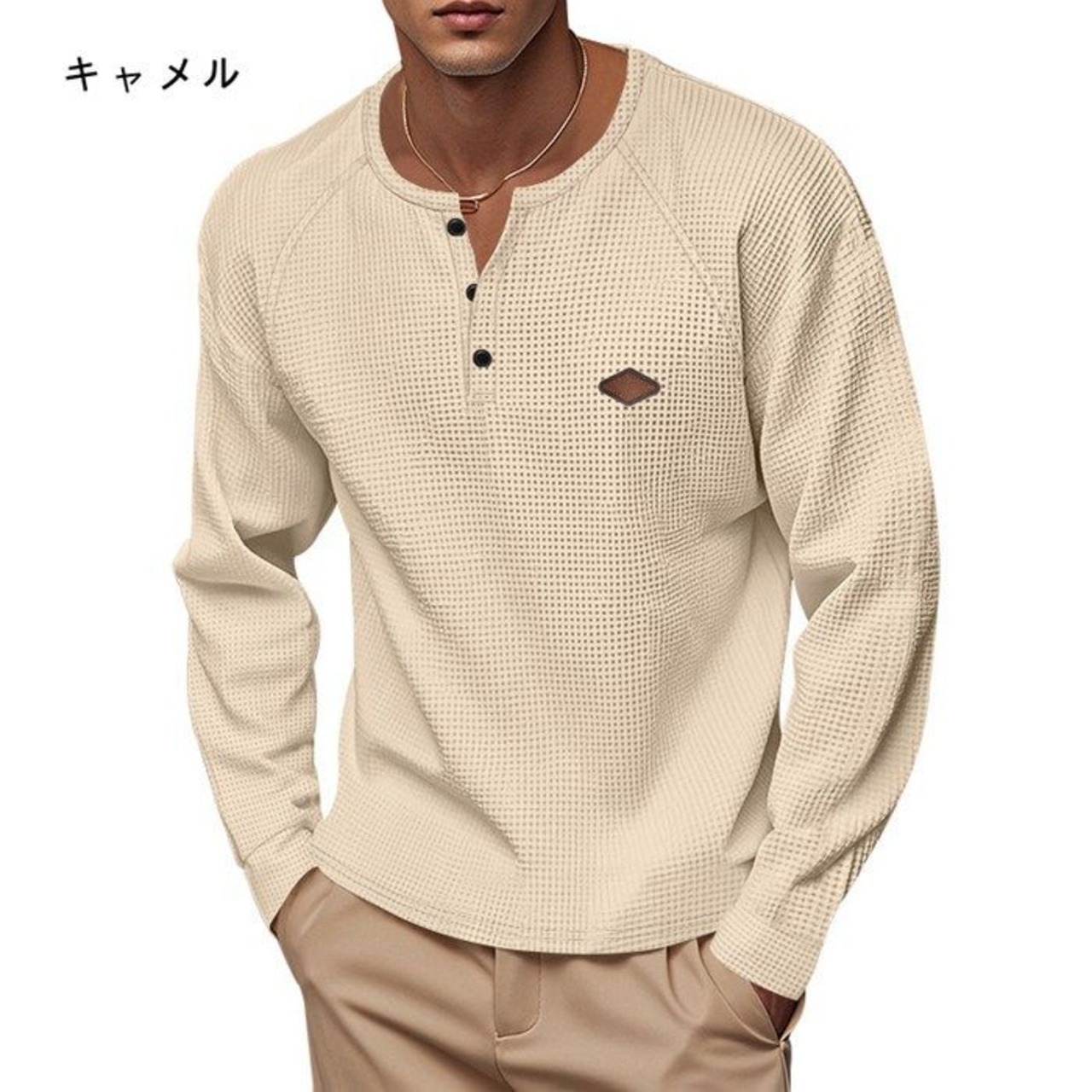 ヘンリーネック 長袖 メンズ ヘンリー 長袖カットソー ワッフルtシャツ メンズ ロングtシャツ インナー 無地 おしゃれ 春 秋 冬 カジュアル