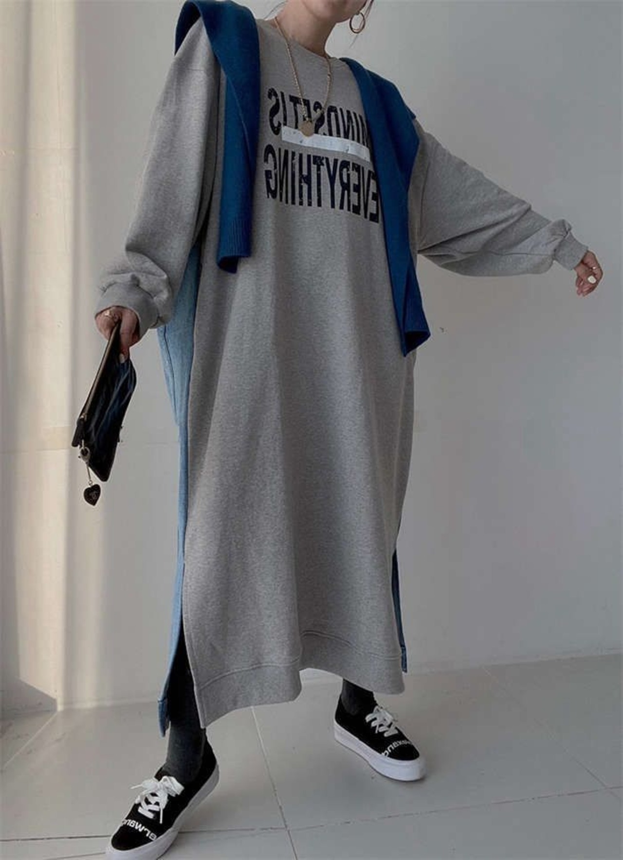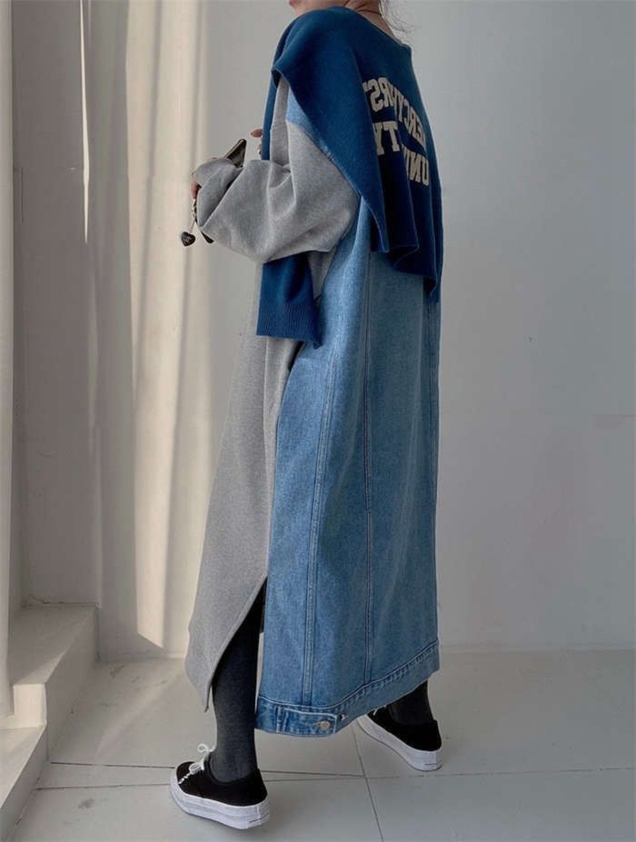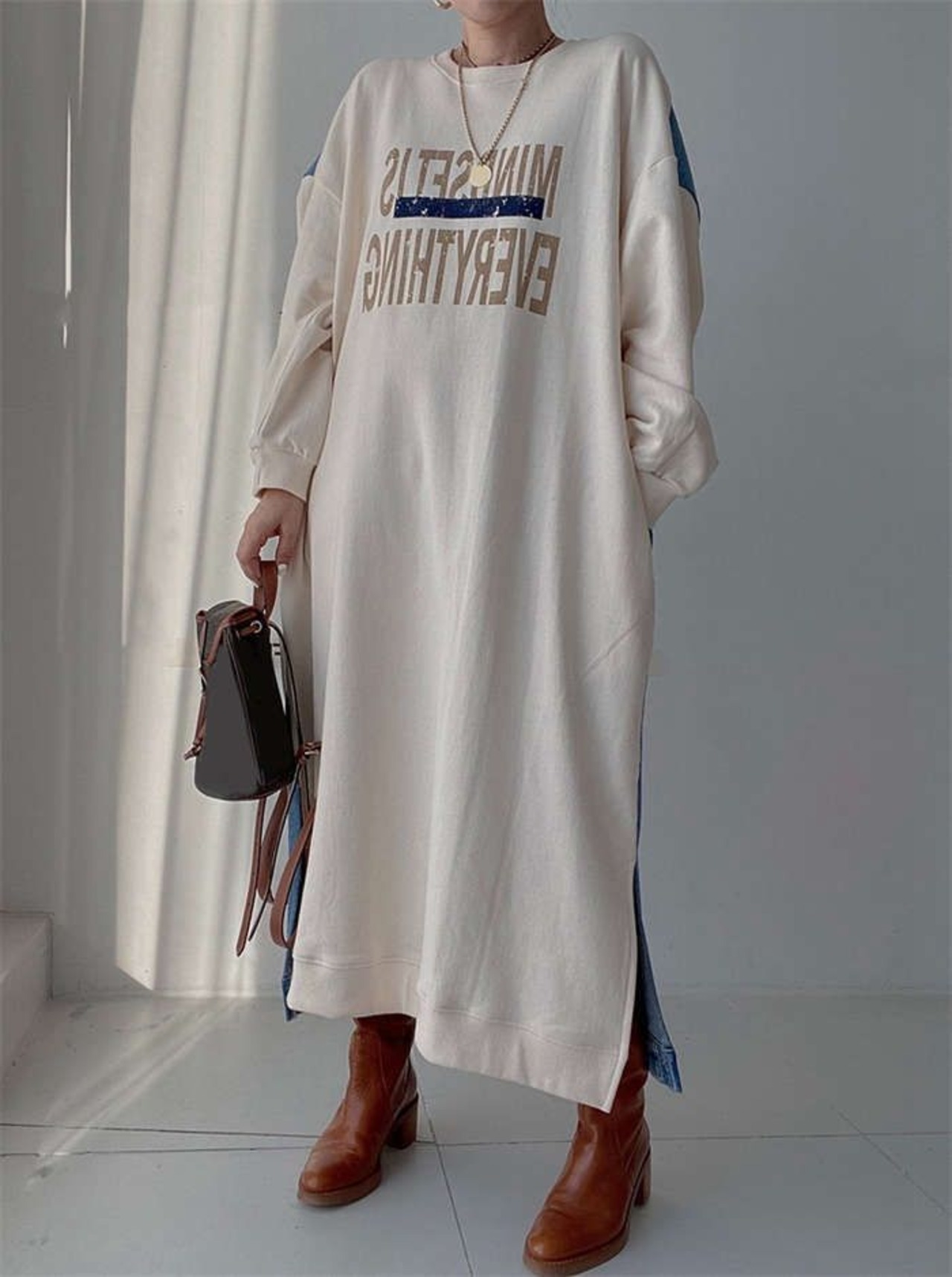 ワンピース レディース 春 秋 デニム ワンピース バイカラー スウェット ワンピース 長袖 切り替え 異素材切り替え 大きいサイズ ゆったり ロング丈 切り替えワンピース 体型カバー オシャレ シンプル