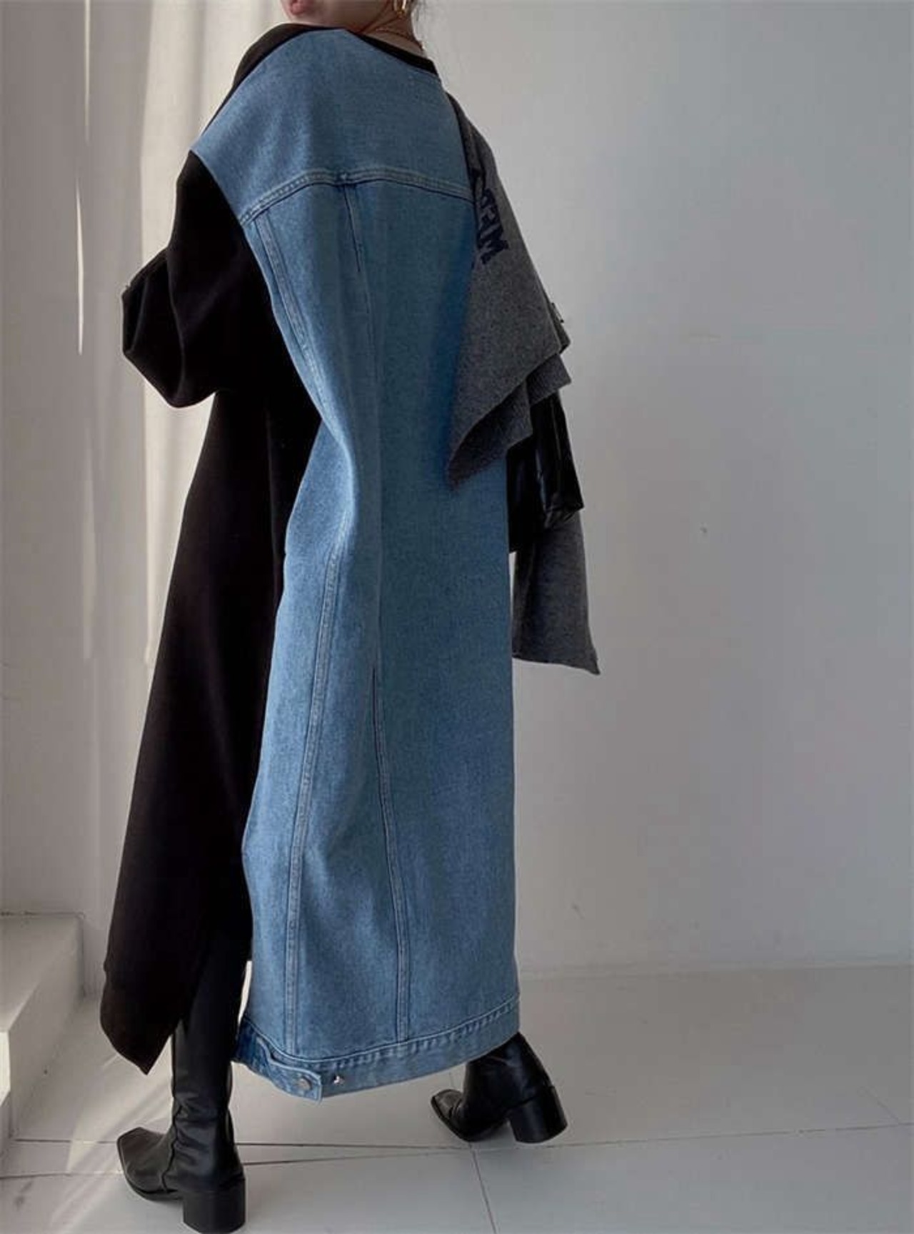 ワンピース レディース 春 秋 デニム ワンピース バイカラー スウェット ワンピース 長袖 切り替え 異素材切り替え 大きいサイズ ゆったり ロング丈 切り替えワンピース 体型カバー オシャレ シンプルxiaokb74
