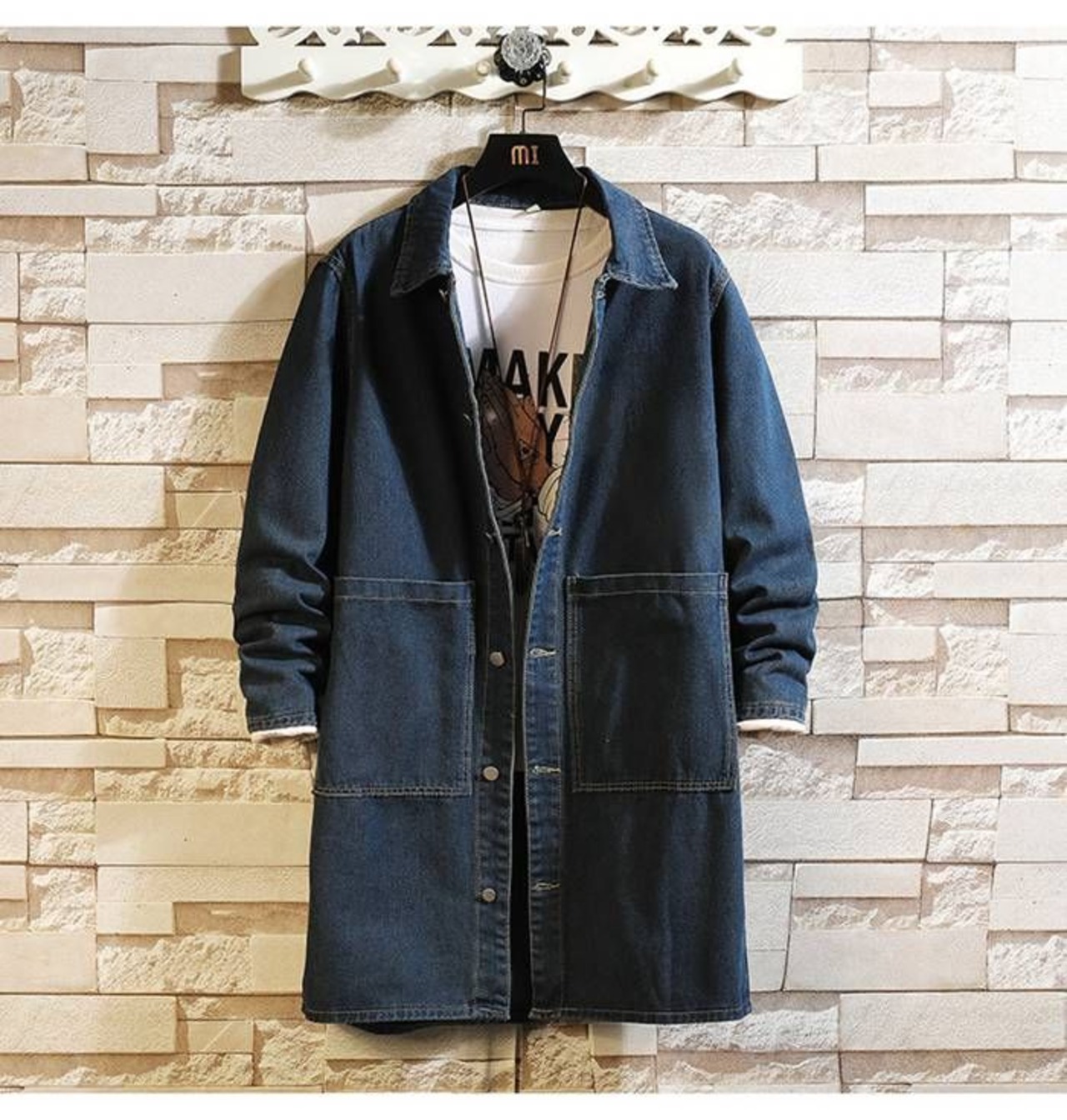 コート デニムコート メンズ ロング丈 無地 デニムジャケット Gジャン ジージャン スプリングコート 大きいサイズ カジュアル goodplus335