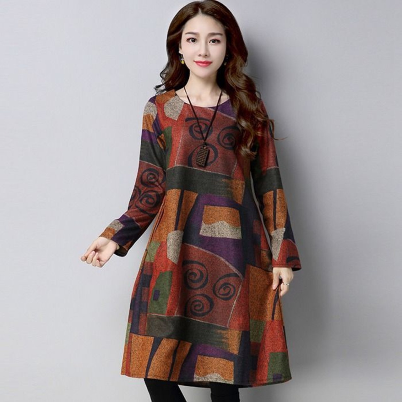 ワンピース チュニック 春 秋 長袖 大人 レディース 可愛い 森ガール エスニック ゆるかわ プルオーバー 膝丈 長袖 大きいサイズ 大人 ワンピ ミディアム ミディ レトロ 体型カバー ひざ丈 ゆったり きれいめ chaoliu15