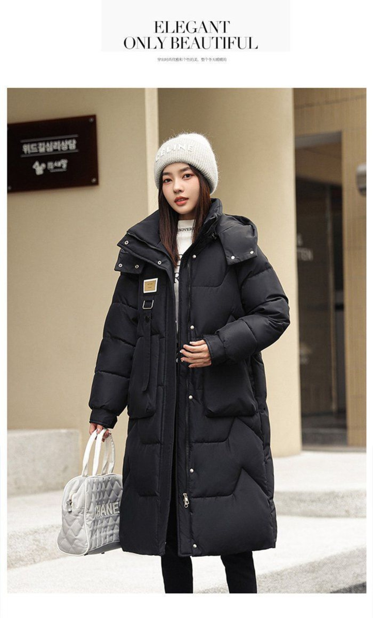 レディースコートのなかに柔らかい綿を入れてふわふわな触り、軽くて保温性も高い。フード付いて寒い日にはお頭を覆って防風性良いです。中綿ロングコートなので膝と足も守って暖かいです。