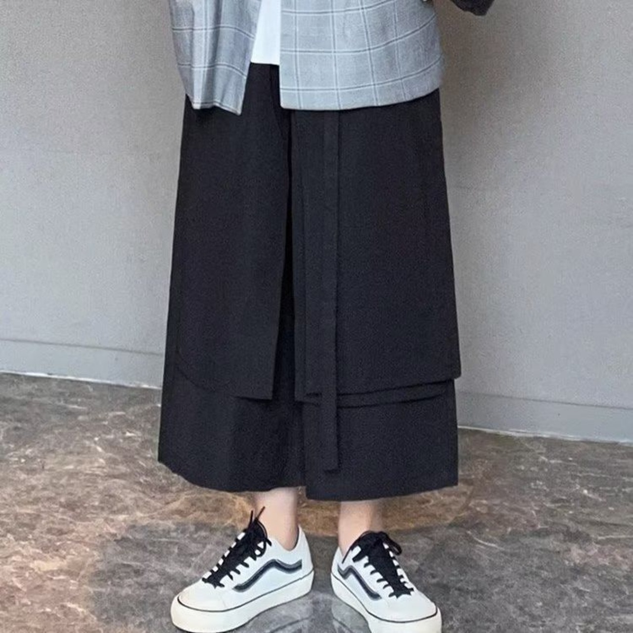 サルエルパンツ 変形 メンズ ワイドパンツ 巻きドレープ アラジンパンツ ゆったり 袴パンツ ウエストゴム 男女兼用 リラックスパンツ ブラック系 オールシーズン オーバーサイズ songlin01