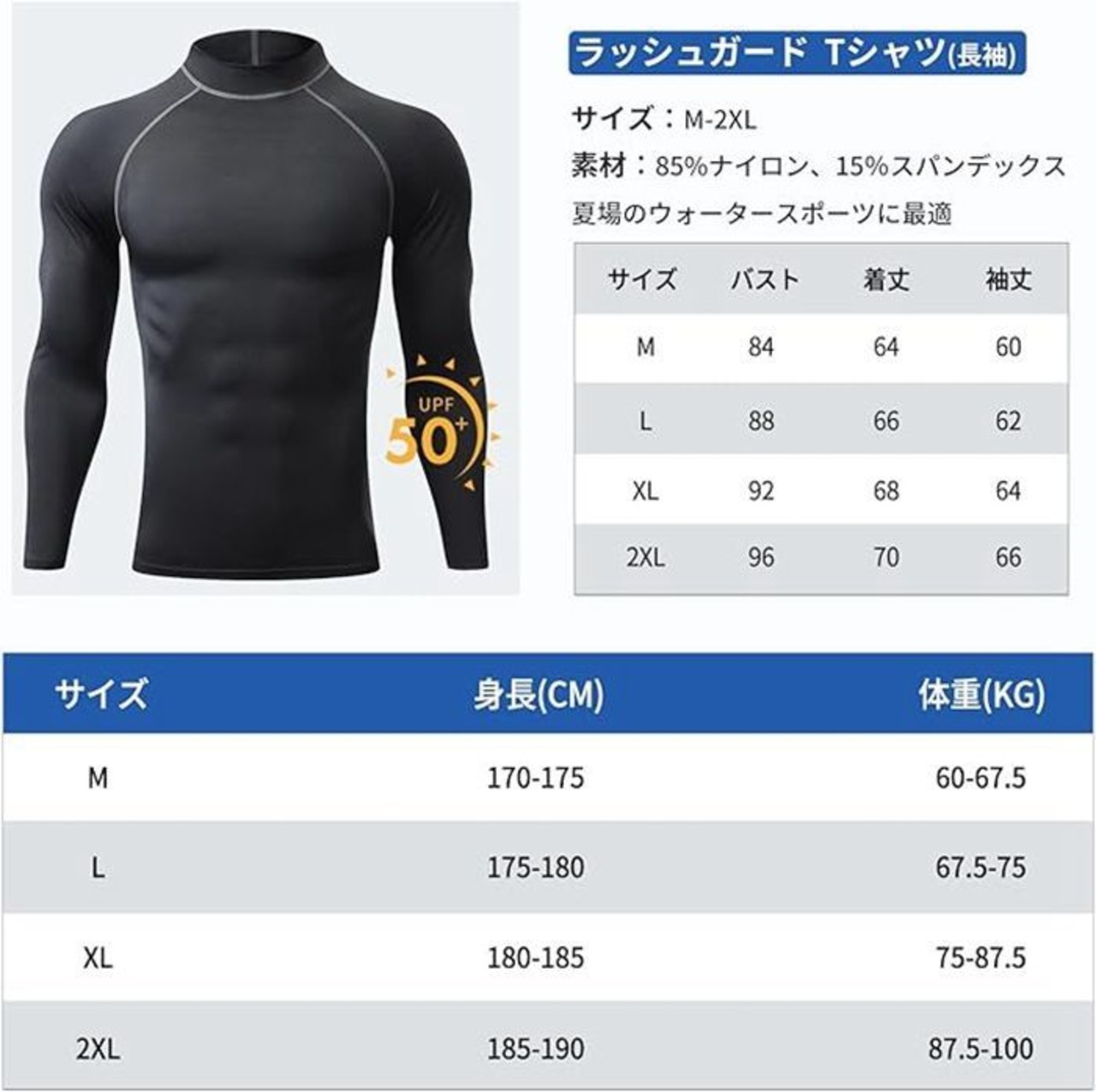 ラッシュガード メンズ 長袖 tシャツ 立ち襟タイプ ロングスリーブ 水着 ハイネック 体型カバー 日焼け予防 水陸両用 冷感 吸汗速乾 xuanmei01 【品 番】xuanmei01 【カラー】ブラック/グレー、ブラック/ブルー 【サイズ】L XL 2XL 3XL 4XL 素材構成 ナイロン、合成繊維 トップのスタイルハイネック, ラッシュガード ネックスタイルハイネック パターン無地 この商品について 【ハイネック仕様】ハイネック仕様で首元の日焼けを防止しつつ、ゆるやかなV字ラインにより圧迫感を軽減。日本人の体型に合わせて首元から脇へのカットを伸ばしており、運動性・快適性にこだわったデザインです。 【4WAYストレッチ】縦横に伸びる4WAYストレッチ生地だから、れた状態での動きにも対応します。海や川での1日を安全に楽しむためにも、ぴったりのラッシュガードです。 【吸汗速乾&通気性】通気性・吸汗性・速乾性にすぐれた接触冷感素材を使用し、ひんやりした着心地。肌にやさしくフィットするフラット縫製に加え、着心地も抜群! 【UVカット&水陸両用】紫外線を90%以上カットし、身体をプロテクト。水に濡れても日焼け対策に。洗濯50回後も『UVカット性能』を維持! 【耐塩素加工&耐久性】繊維同士が密集した厚手な素材が使われているので耐久性抜群、塩素消毒のプールの使用による生地の劣化を防ぐ。