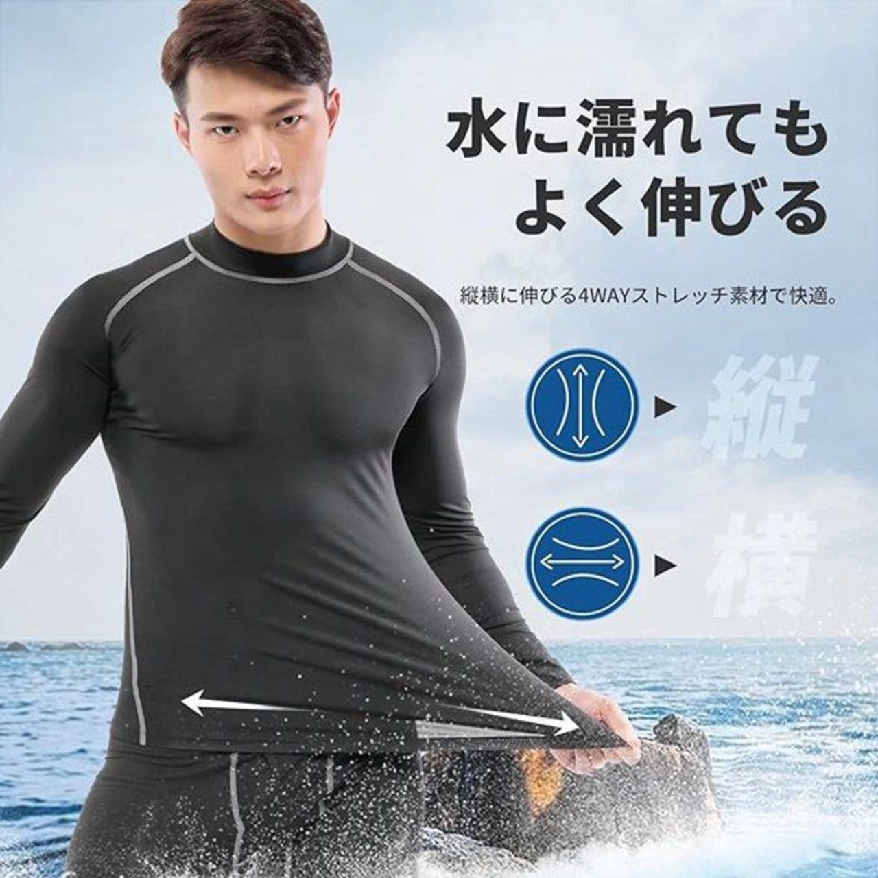 ラッシュガード メンズ 長袖 tシャツ 立ち襟タイプ ロングスリーブ 水着 ハイネック 体型カバー 日焼け予防 水陸両用 冷感 吸汗速乾 xuanmei01