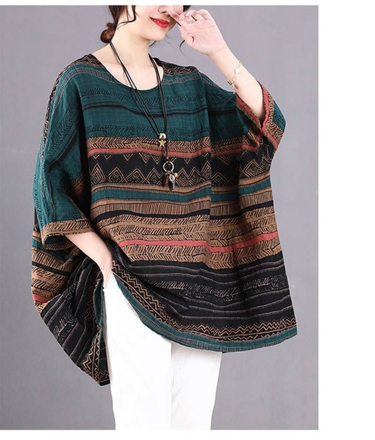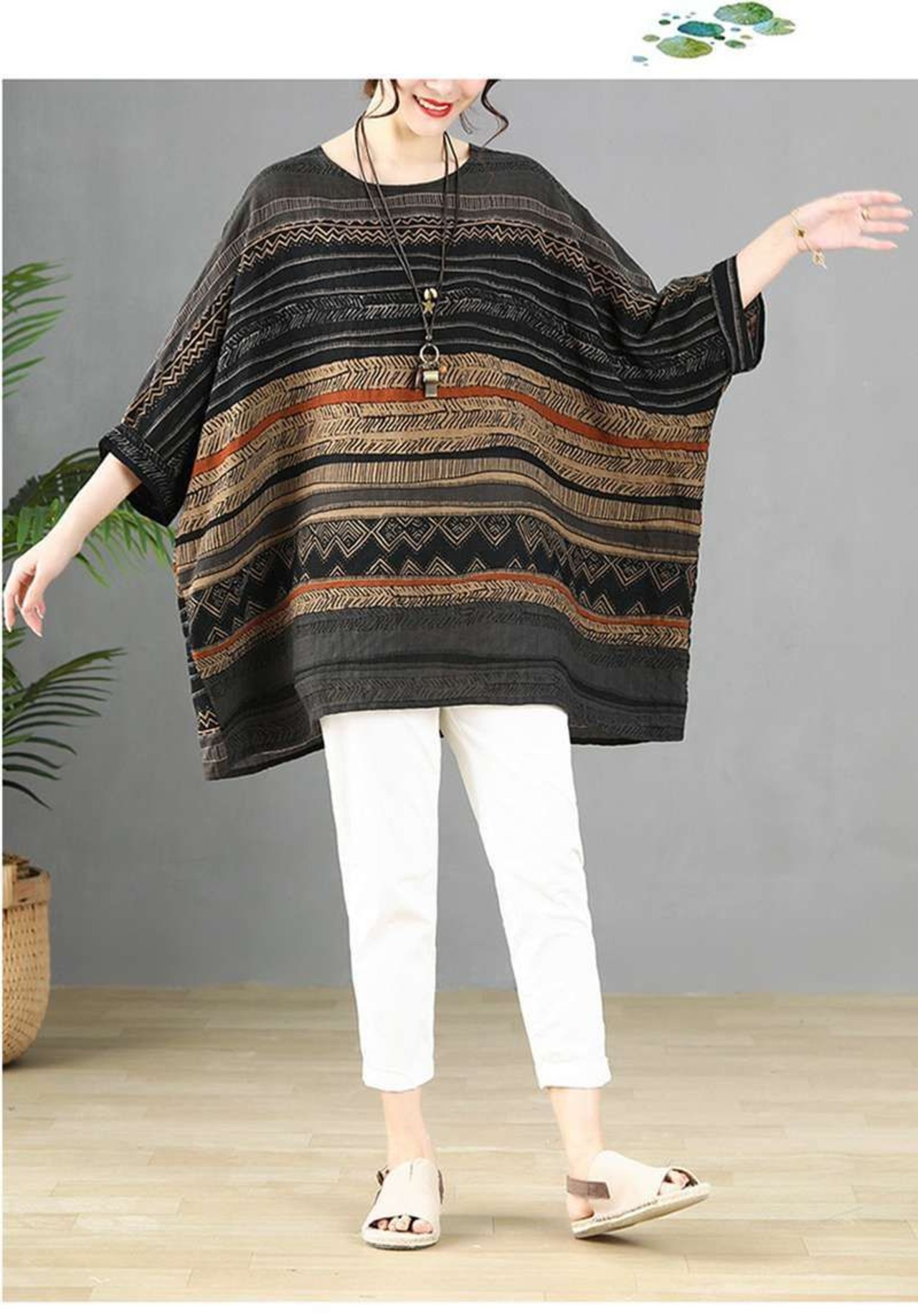チュニック レディース 即購入OK 大きいサイズ 綿麻 五分袖 夏 Tシャツ ブラウス プルオーバー ゆったり トップス 総柄 カットソー チュニックワンピース フレア キレイめ カジュアル エスニック風 chaoliu420