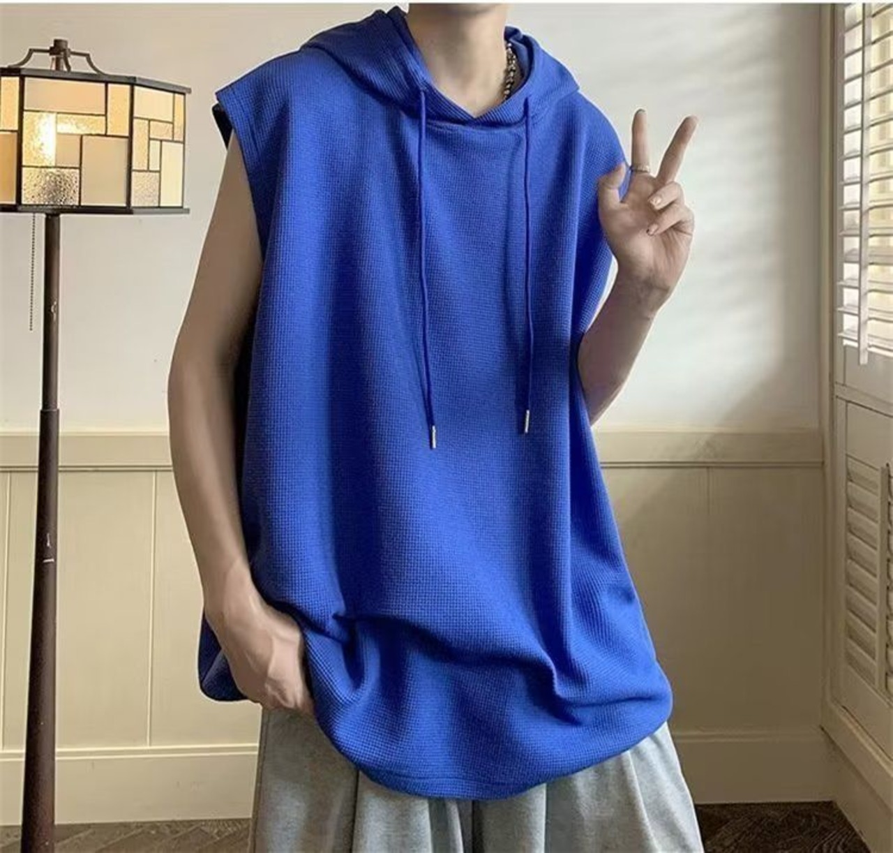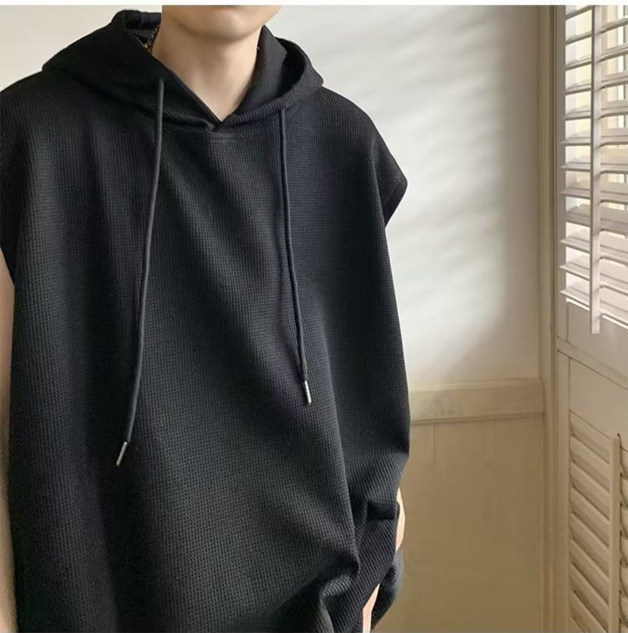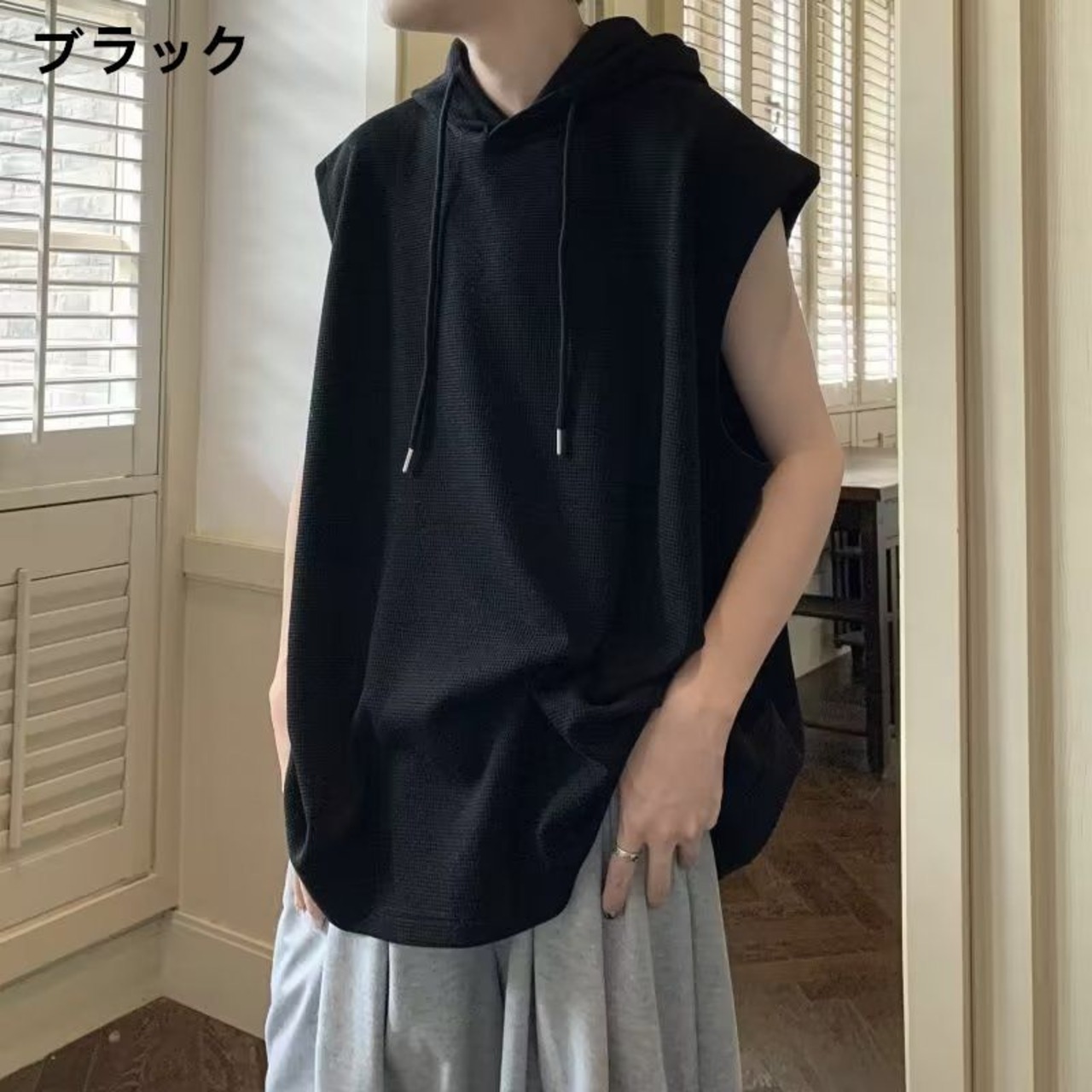 パーカー メンズ ノースリーブ ワッフル おしゃれ クルーネック 夏パーカー 薄手 ノースリーブパーカー 無地 フード付き カジュアル プルオーバー 夏 涼しい ベスト 通気性 メンズファッション weiminger37