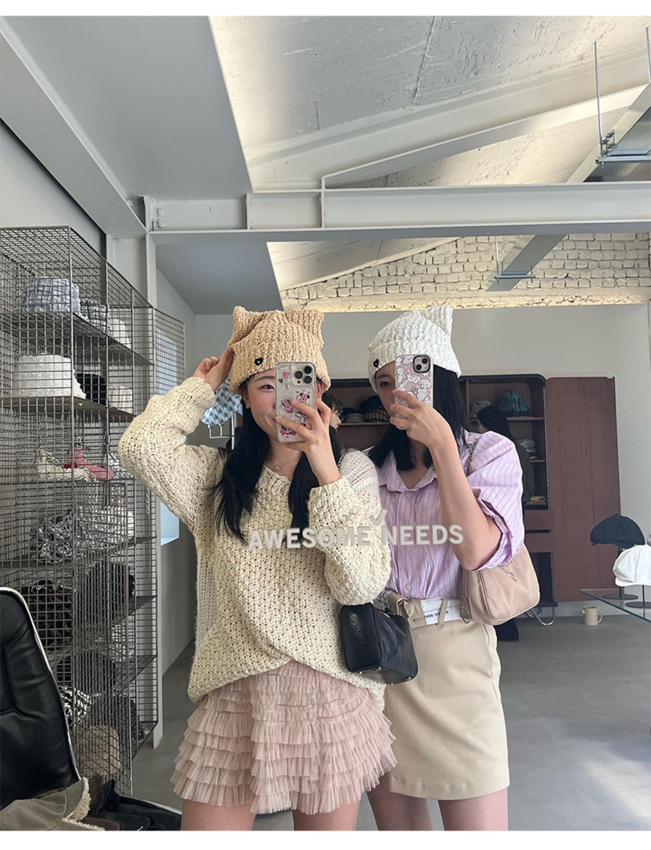 韓国 ファッション AWESOME NEEDS レディース aespa ウィンター 着用 ネコ耳 ニット帽 猫耳帽子 ニットキャップ ビーニー SS CAT KNIT HAT BEIGE