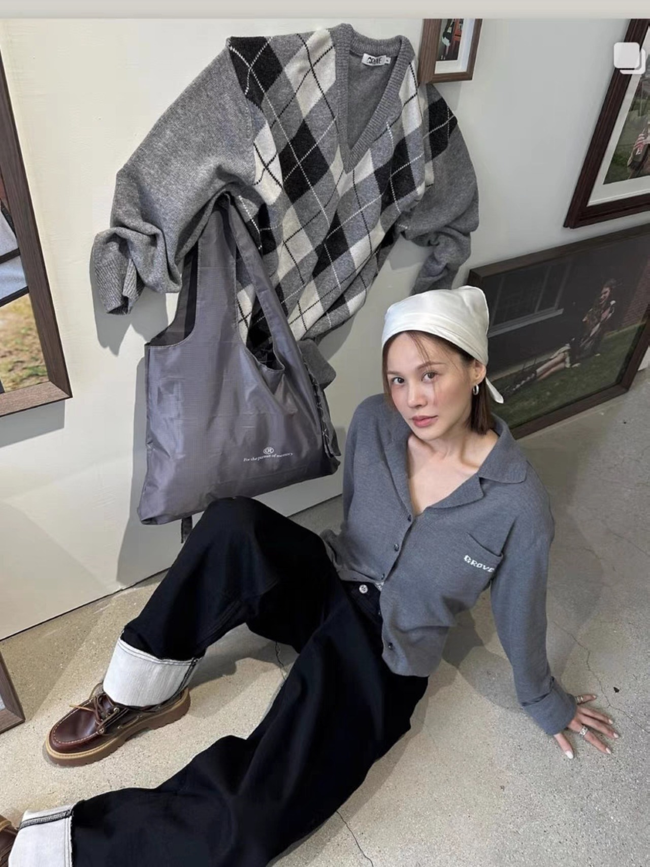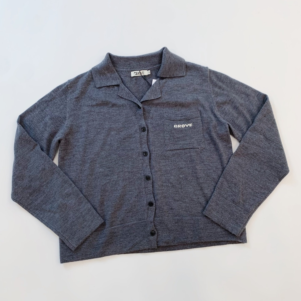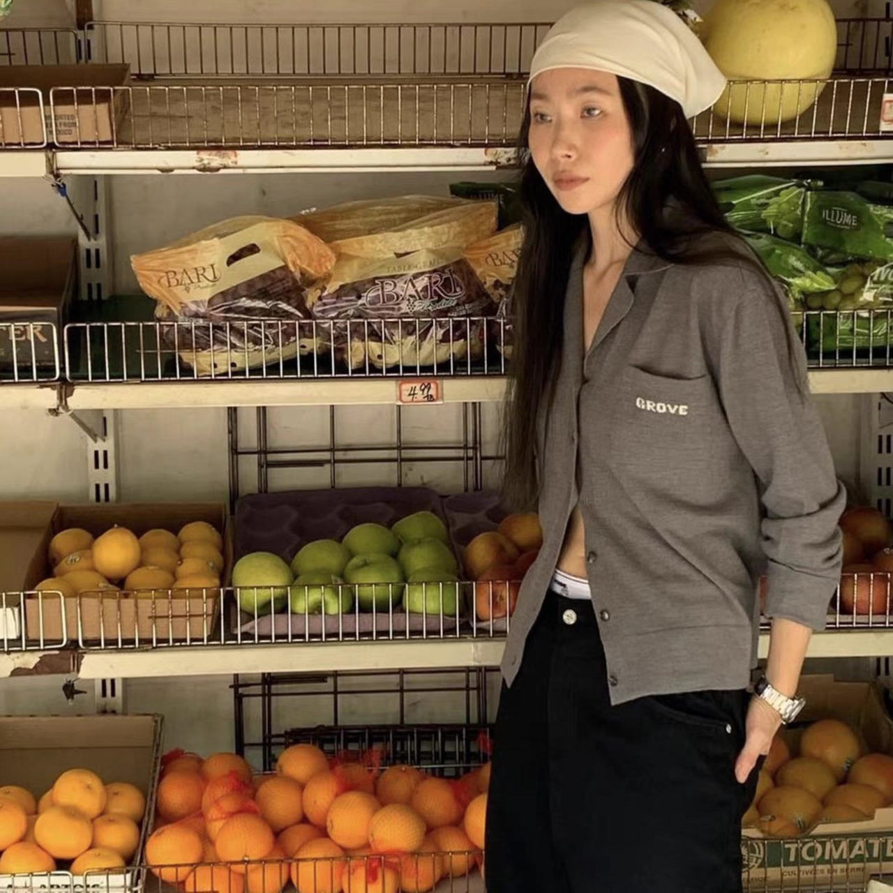 韓国ファッション 新作 GROVE グローブ カーディガン レディース CLUE V-NECK CARDIGAN GRAY