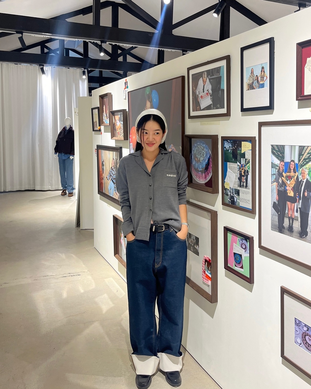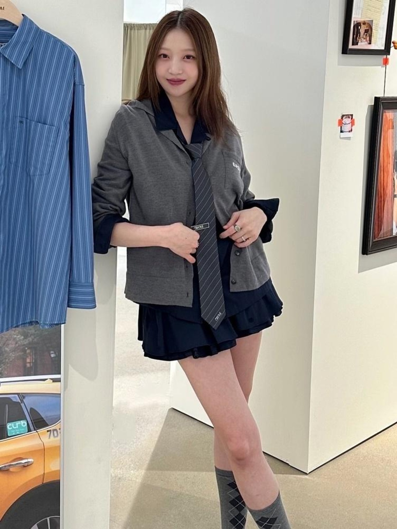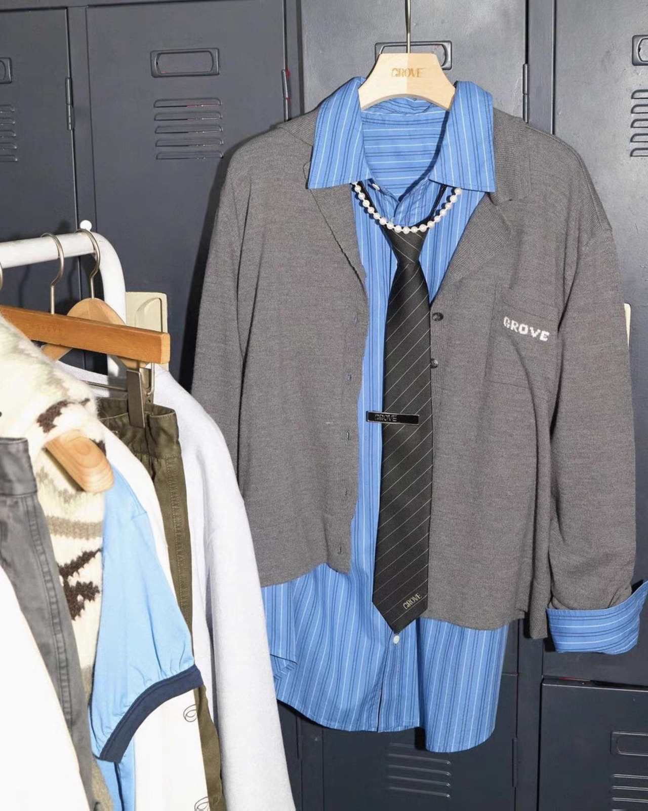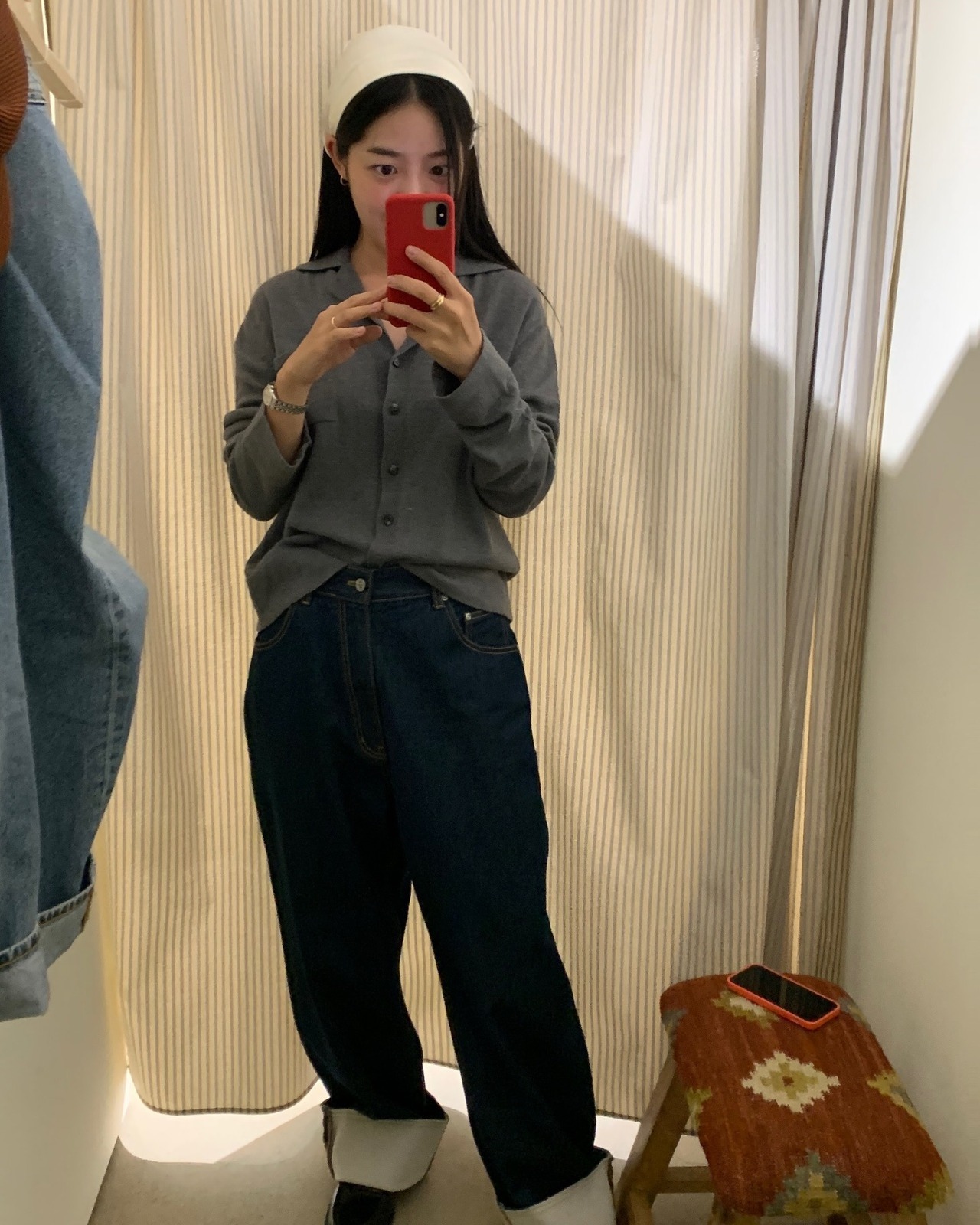 韓国ファッション 新作 GROVE グローブ カーディガン レディース CLUE V-NECK CARDIGAN GRAY