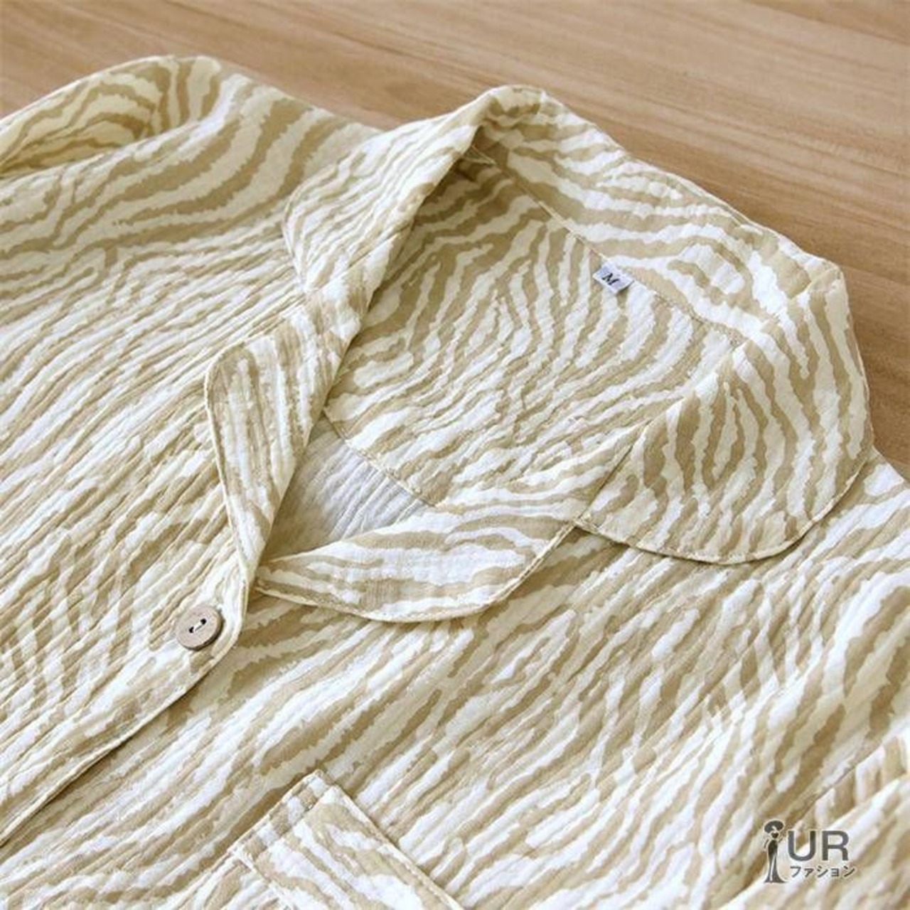パジャマ レディース ガーゼ ルームウェア 長袖 トップス 前開き ロングパンツ 部屋着 セットアップ 2点セット 寝間着 総柄 春 秋 冬 寝巻き 女性 上下セット 大人 快適 liangyi34☆DZ10