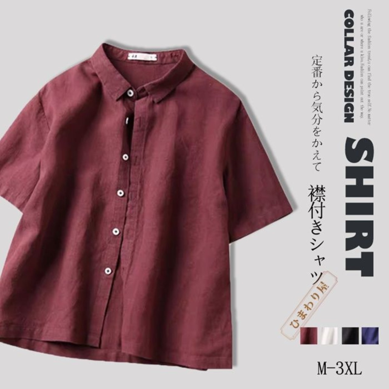 襟付き シャツ レディース 半袖 ブラウス 襟つき 半袖シャツ 大きいサイズ カジュアル シャツブラウス ショート丈 前開き 羽織り ライトアウター 夏シャツ 綿麻風 通気性 カジュアル 襟付きシャツ オーバーサイズ シンプル 無地xkxiaoz25