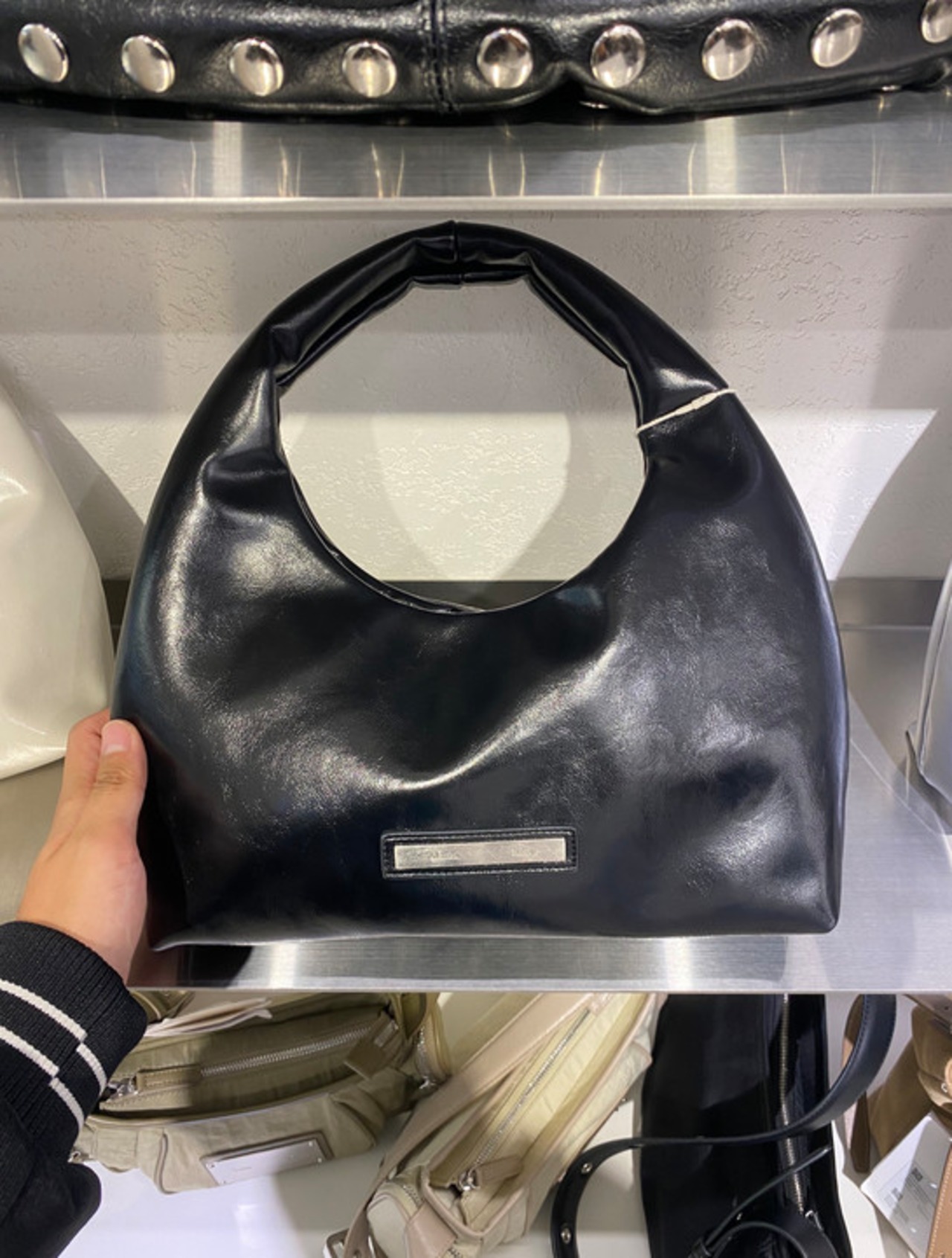 人気 韓国 Matin Kim マーティンキム トートバッグ レディース ファッション EMBOSSED LOGO LEATHER MINI TOTE BAG BLACK