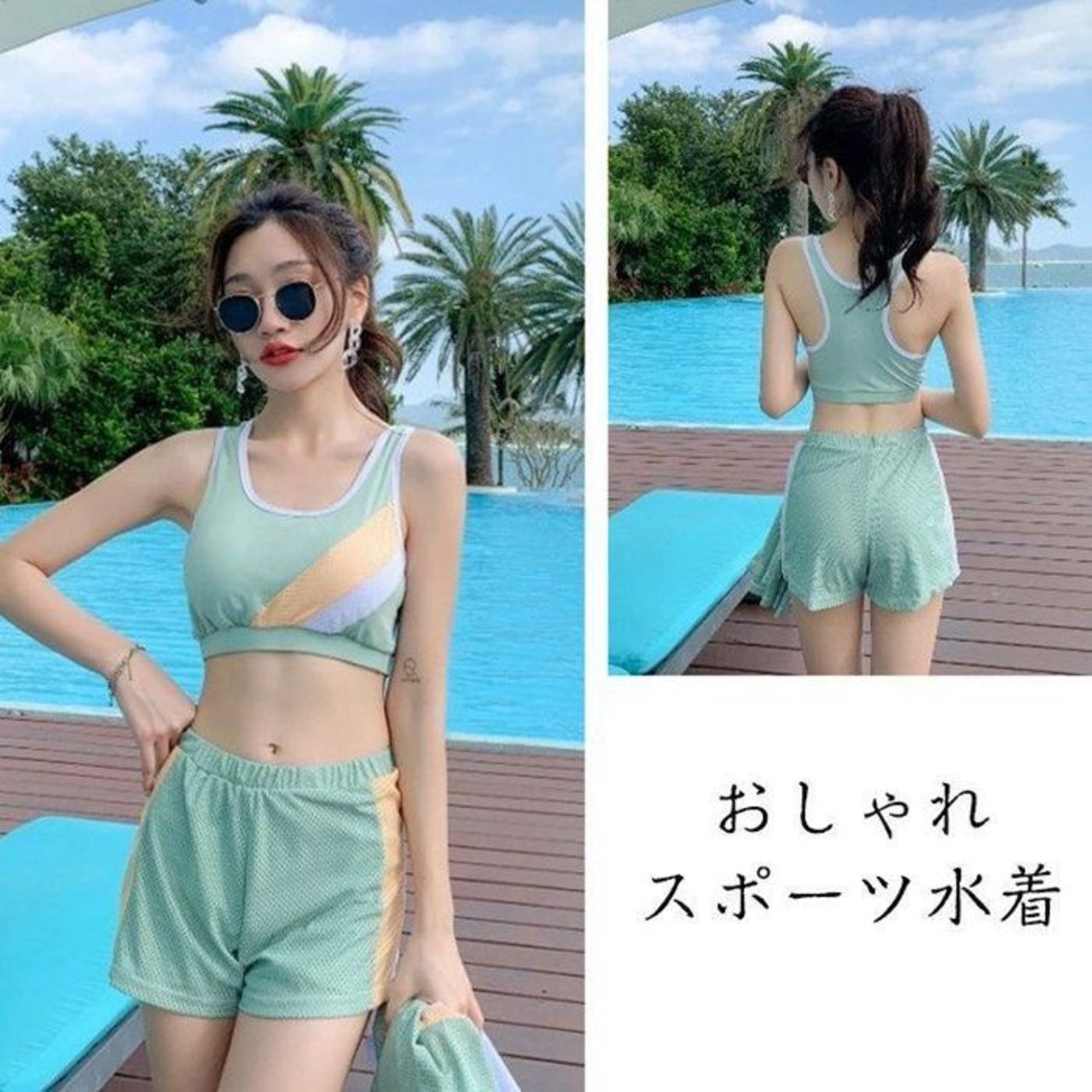 水着 即購入OK レディース 体型カバー 露出控え 中学生 高校生 大学生 韓国 水着セット フィットネス 水着 スポーティー 3点セット セパレート タンキニ タンク ショートパンツ かわいい スポーツ 水着 ファション おしゃれxzzhang429
