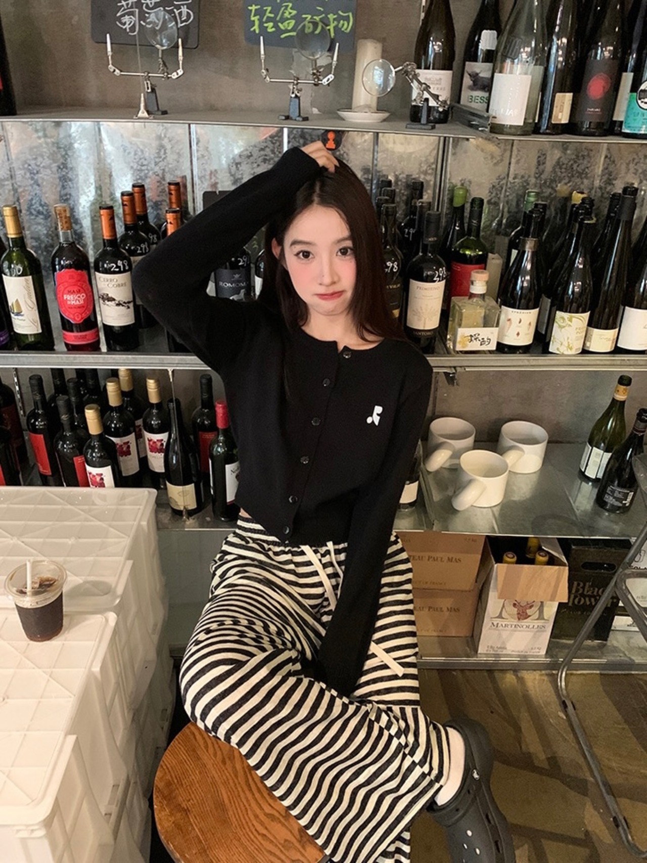 人気 韓国 レストアンドレクリエーション Rest&Recreation ファッション 可愛い トップス ショート ニット カーディガン RR CROP KNIT CARDIGAN ブラック