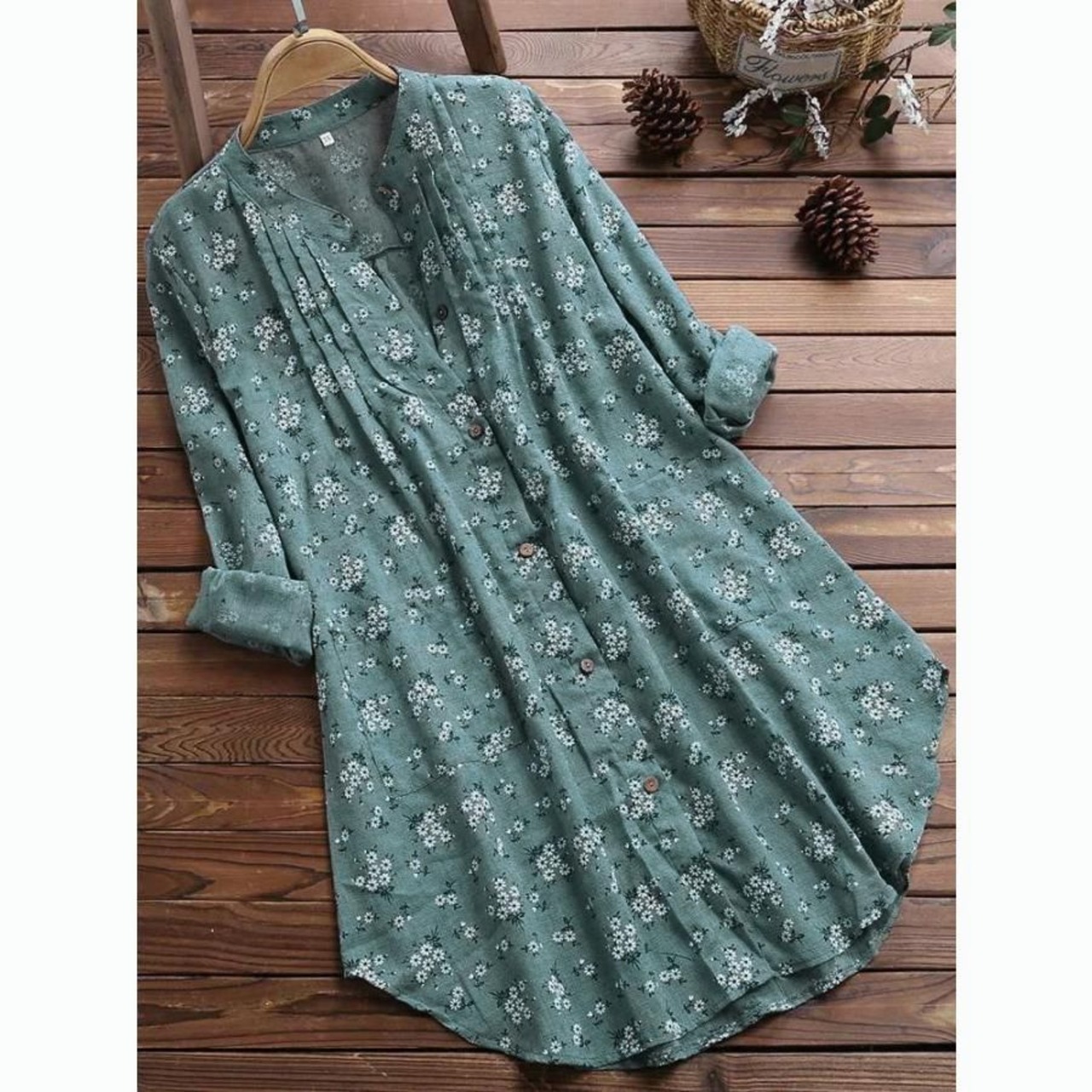 チュニック 夏 ブラウス シャツ 長袖 レディース プルオーバー ブラウス ロングシャツ シャツワンピース 30代 40代 50代 夏 ゆったり 花柄 可愛い