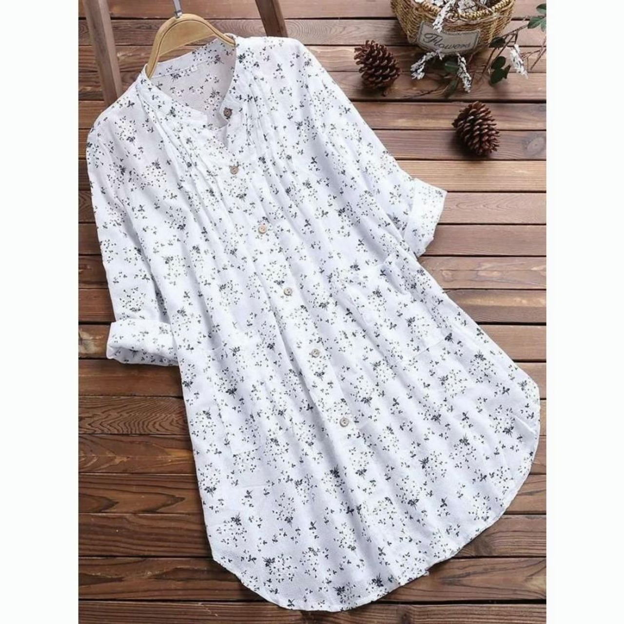 即購入OK チュニック 夏 ブラウス シャツ 長袖 レディース プルオーバー ブラウス ロングシャツ シャツワンピース 30代 40代 50代 夏 ゆったり 花柄 可愛いcbrd130
