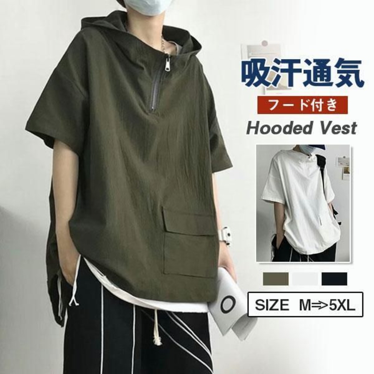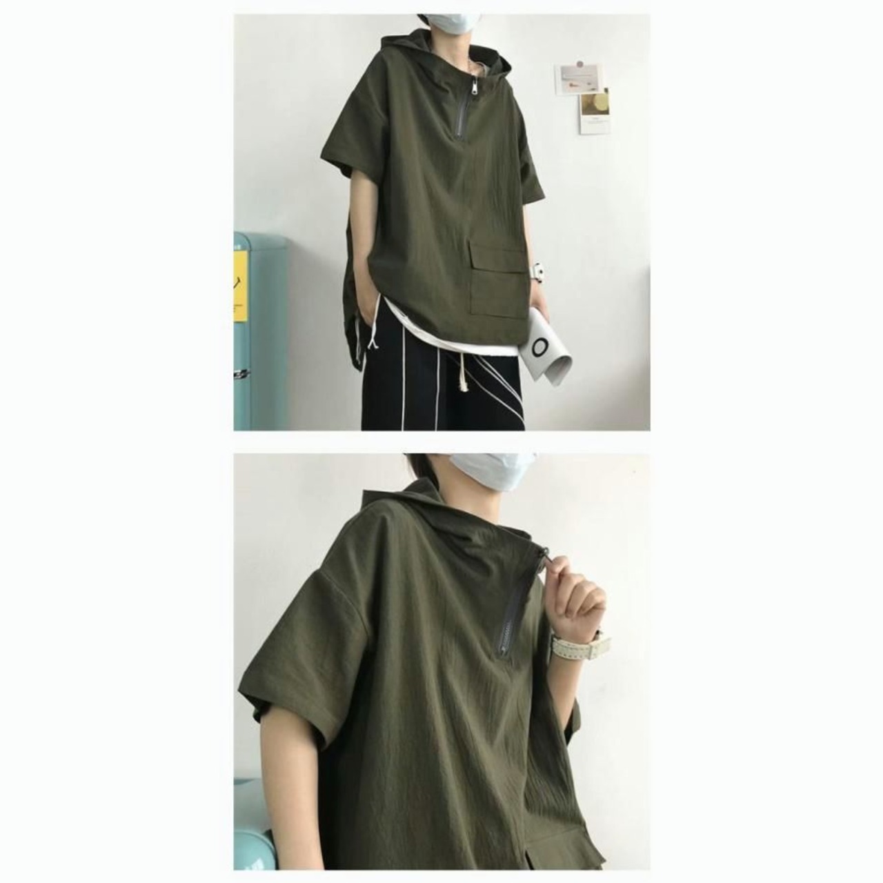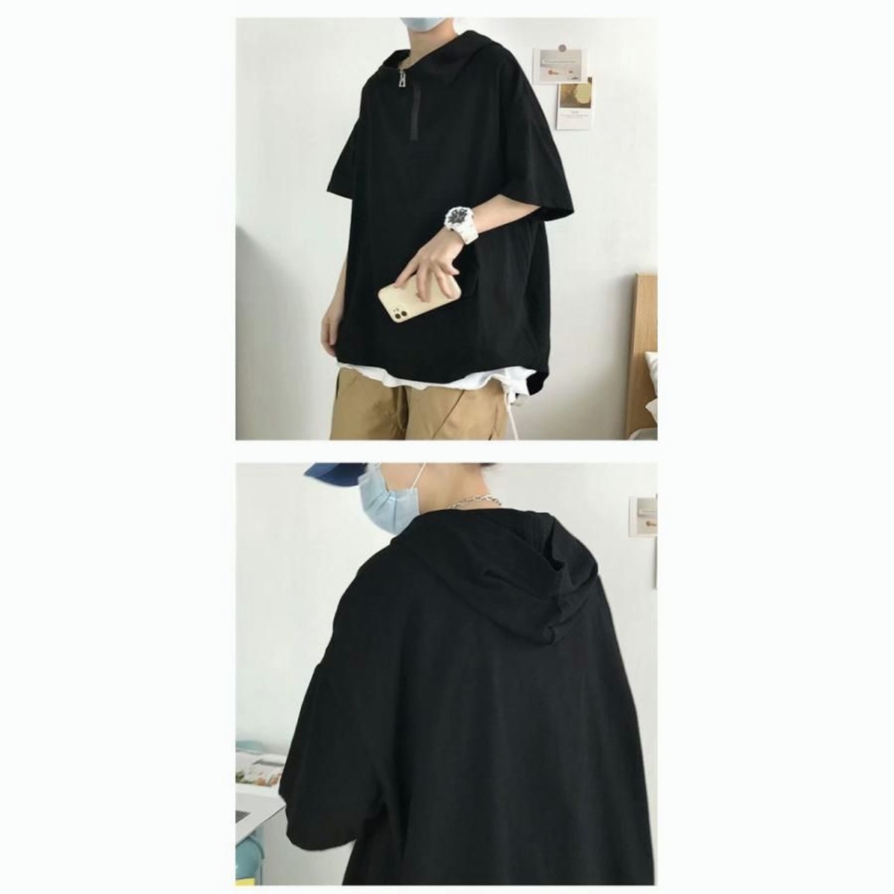 即購入OK 半袖パーカー メンズ 夏服 プルオーバー フード付き トップス カジュアル シンプル ゆったり 無地 おしゃれ 通学 通勤 お兄系 xiaokong13