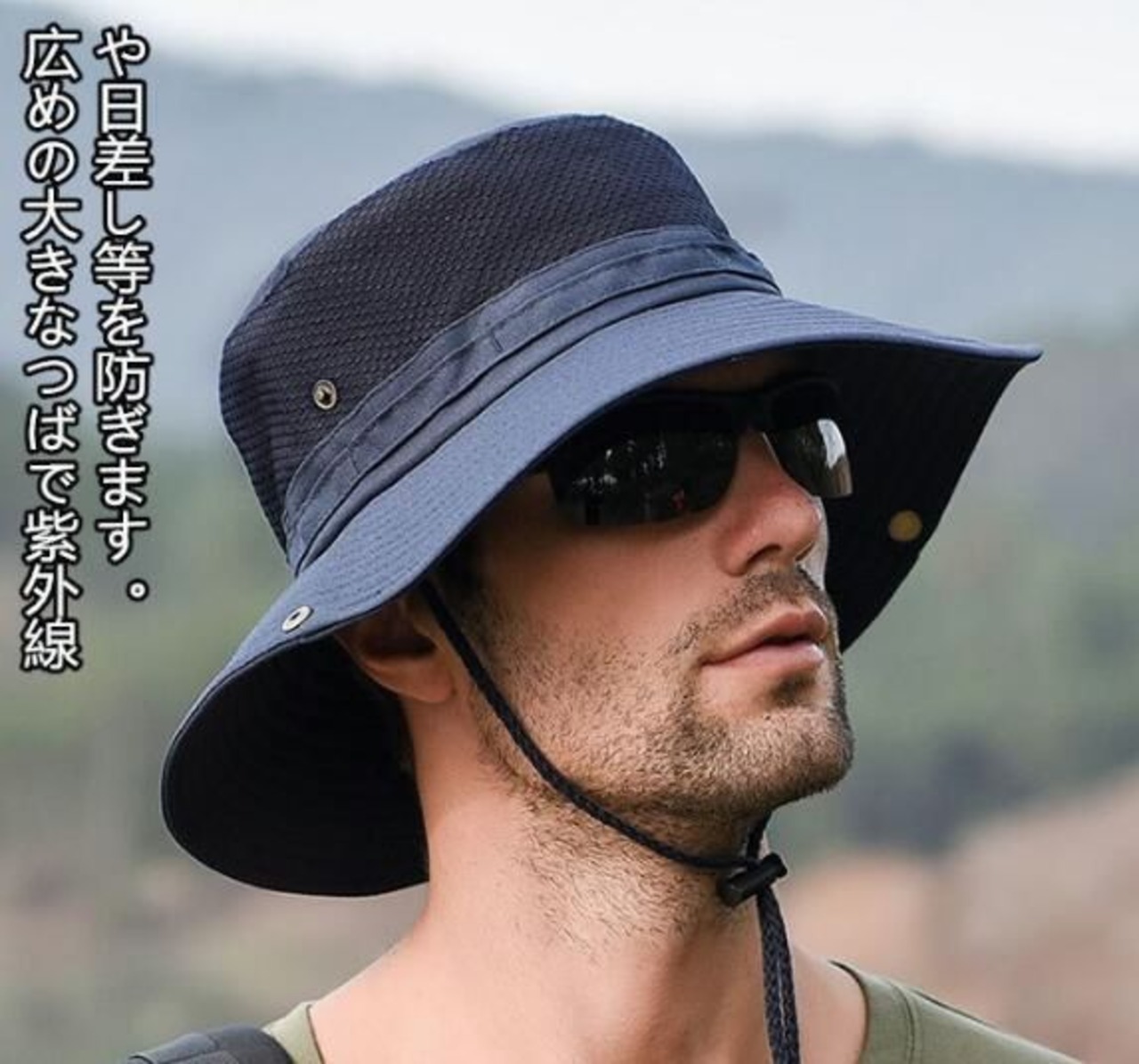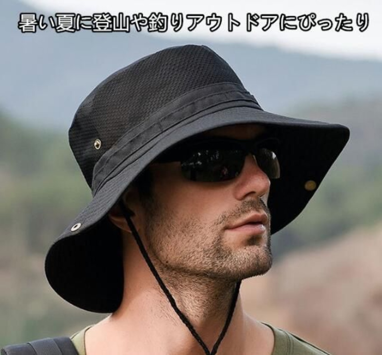 帽子 メンズ メッシュ サファリハット アウトドア つば広 あご紐付き 日除け 釣り ゴルフ 農作業 キャンプ 登山goodplusx01