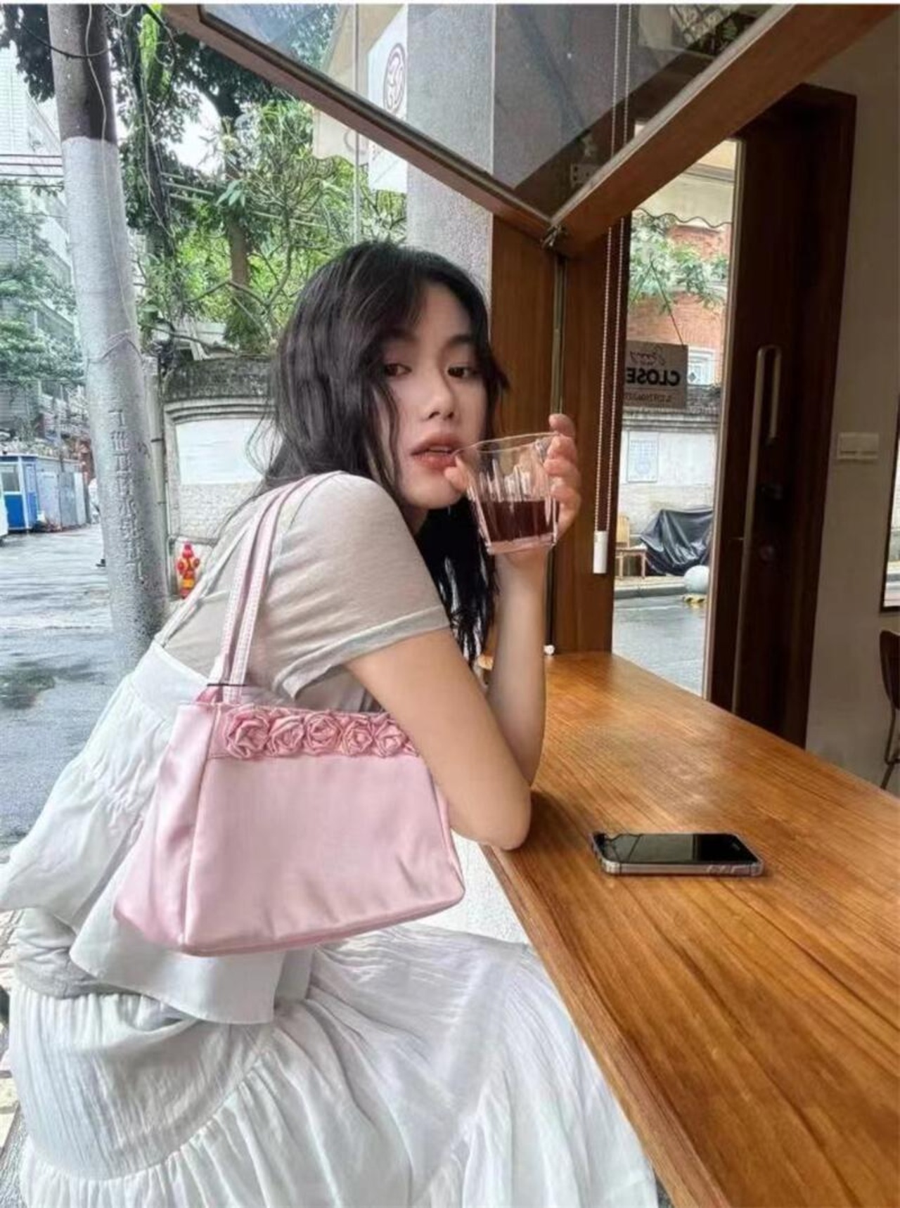 新品 韓国 ハイ トートバック シルク ハンドバッグ 大容量 Phillipa Bag ピンク