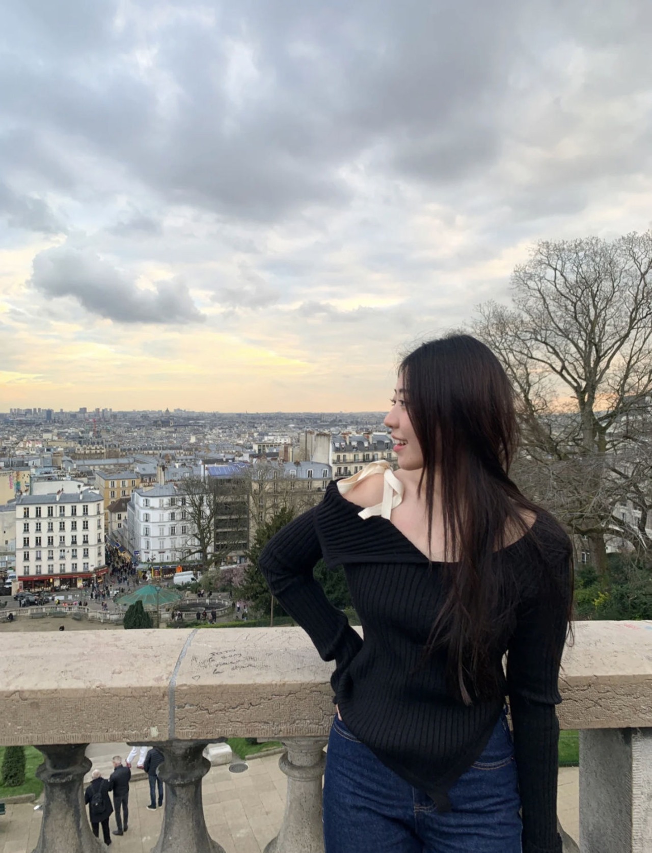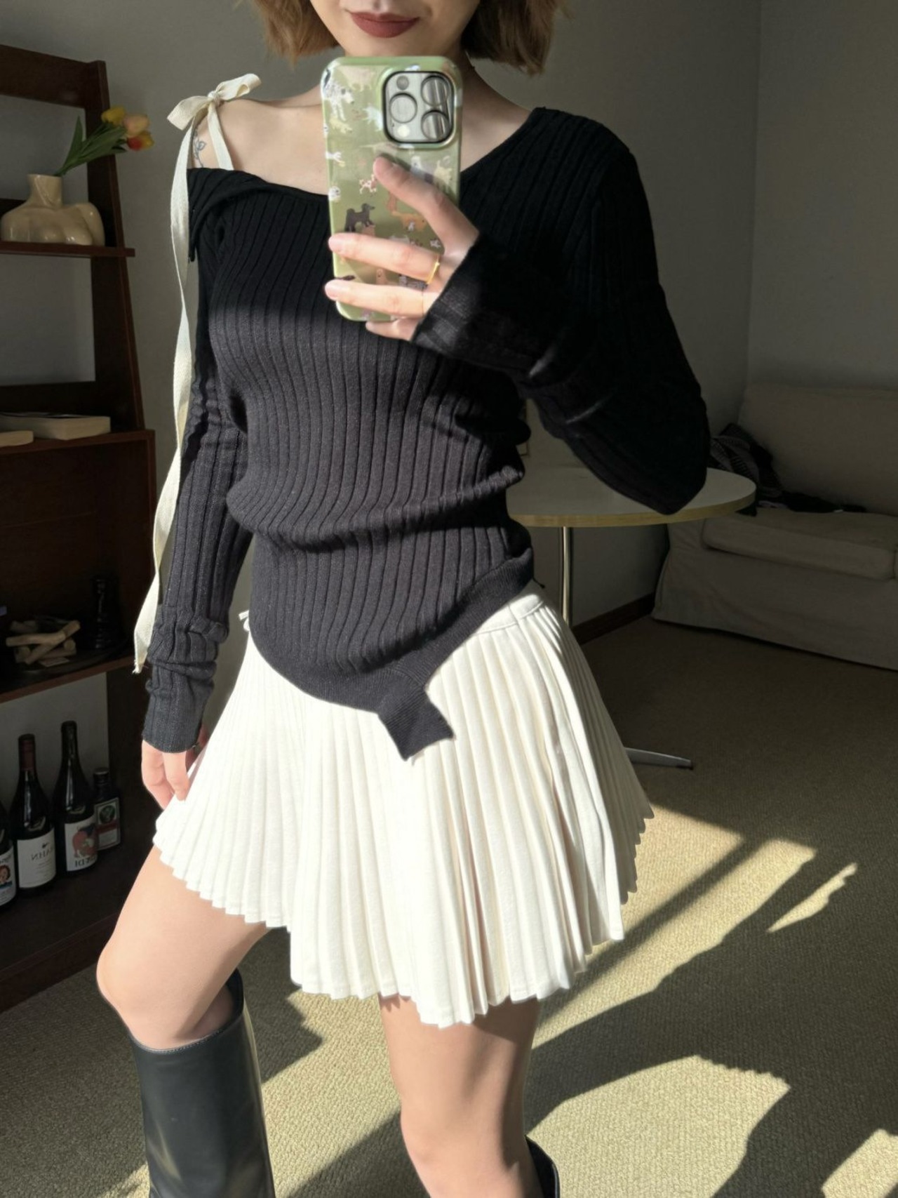 人気 韓国 GLOWNY グロウニー (G)I-DLE ミヨン 着用 アシンメトリーニット 長袖 ISA ASYMMETRICAL KNIT TOP ブラック