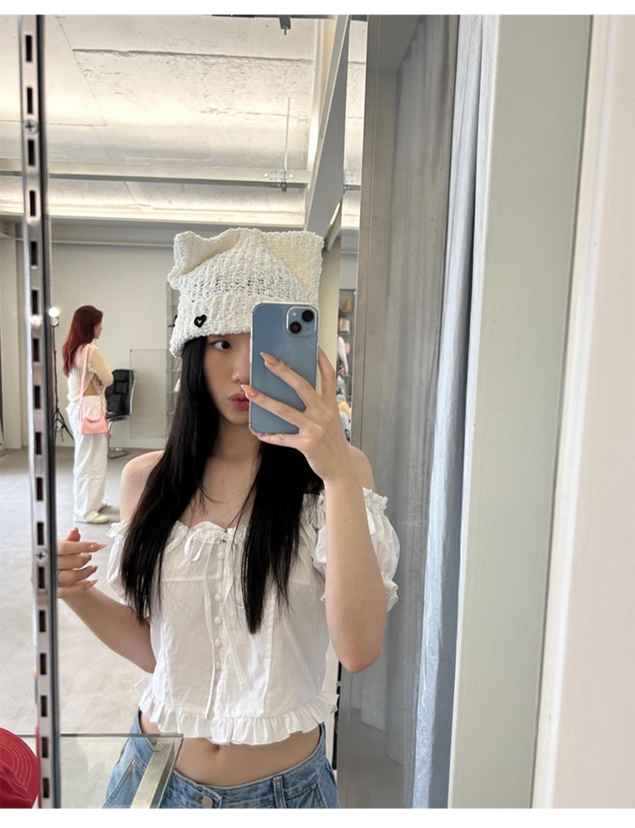 大人気 韓国 AWESOME NEEDS レディース ファッション aespa ウィンター 着用 ネコ耳 ニット帽 猫耳帽子 ニットキャップ ビーニー SS CAT KNIT HAT WHITE