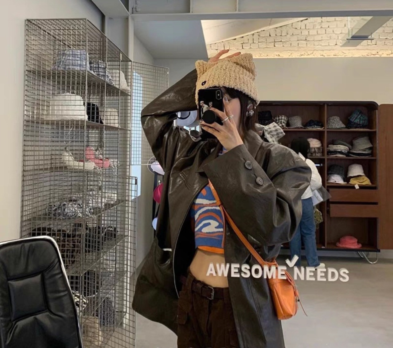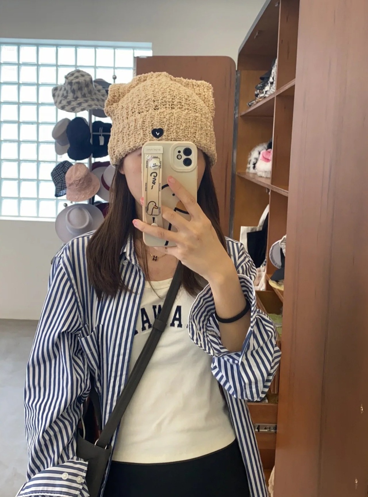 韓国 ファッション AWESOME NEEDS レディース aespa ウィンター 着用 ネコ耳 ニット帽 猫耳帽子 ニットキャップ ビーニー SS CAT KNIT HAT BEIGE